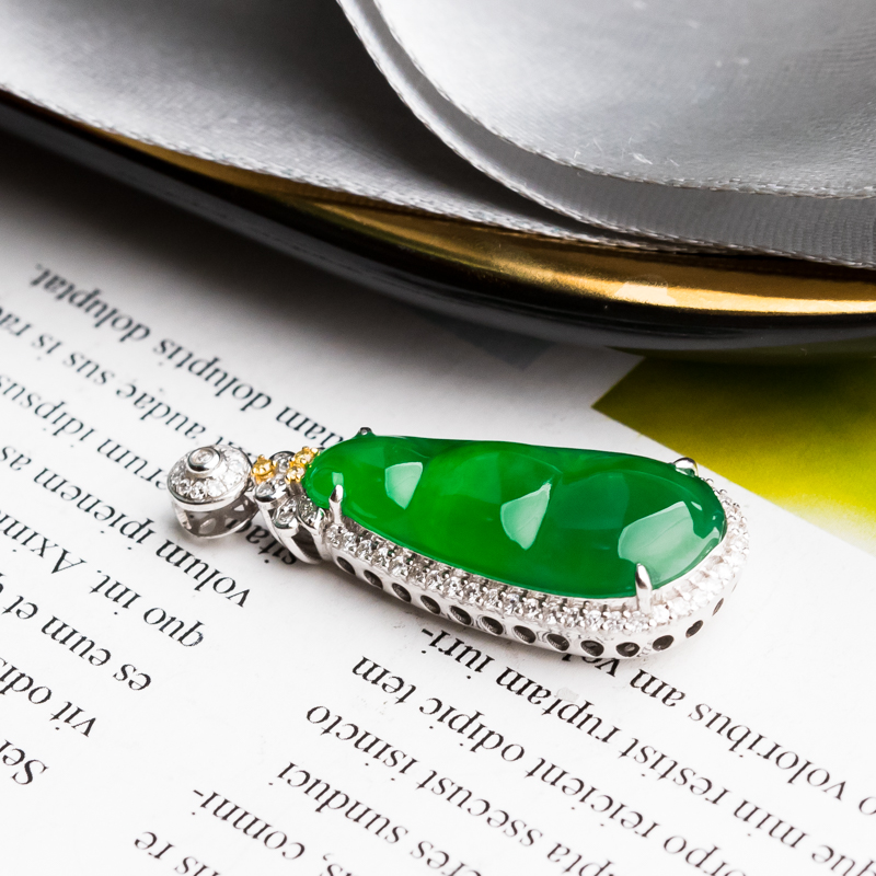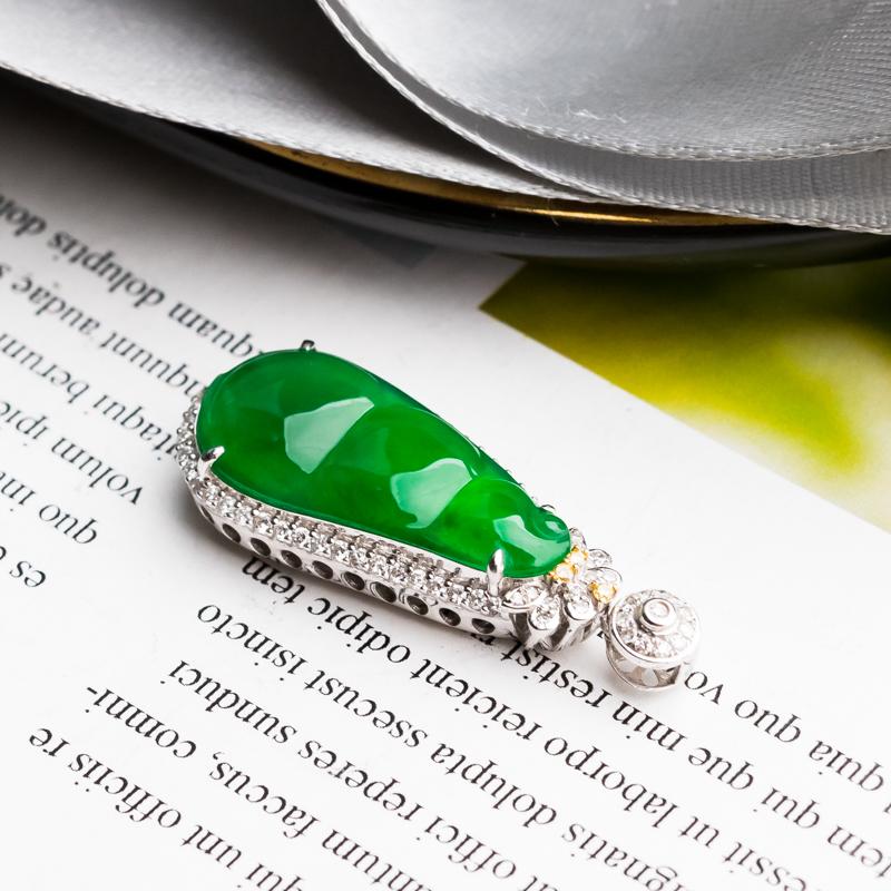 • [名  称] 18K冰种阳绿翡翠福豆吊坠