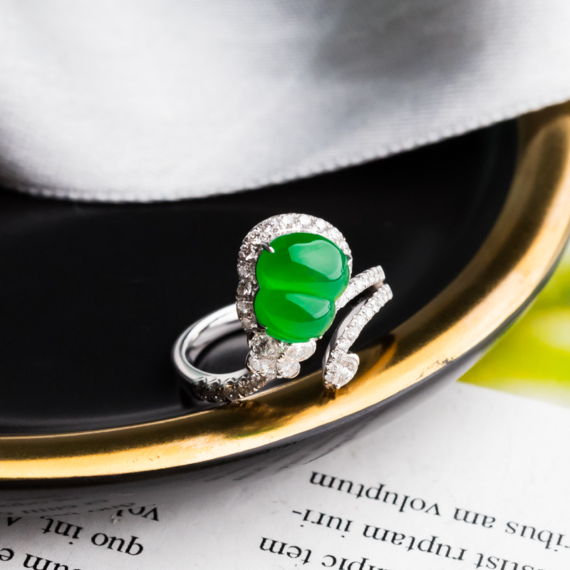 • [名  称] 18K冰种阳绿翡翠福禄戒指