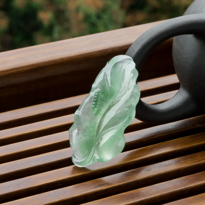 • 冰种飘翠翡翠金枝玉叶吊坠