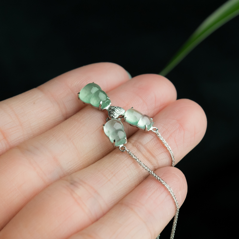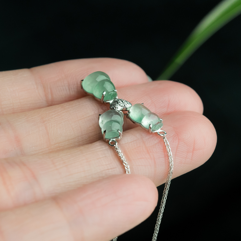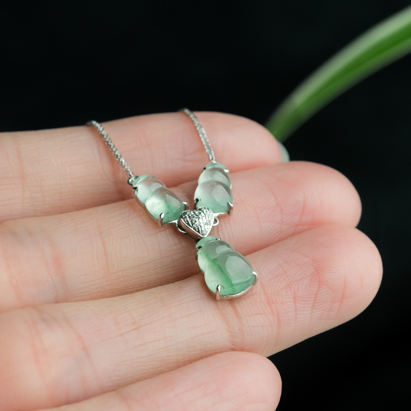 • [名  称] 18K冰种浅绿翡翠福禄项链