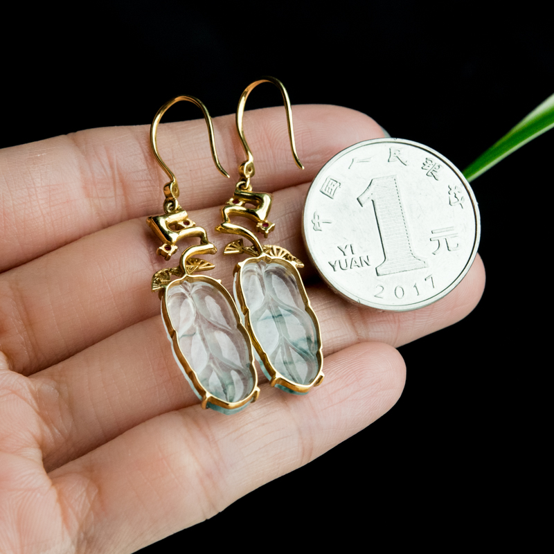 • [名  称] 18K冰种飘花翡翠金枝玉叶耳坠