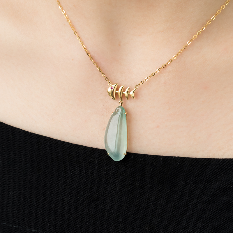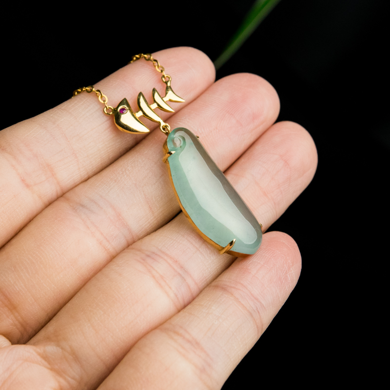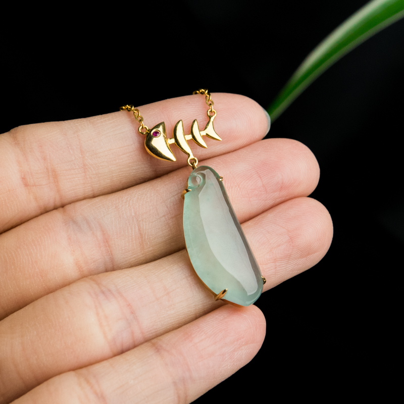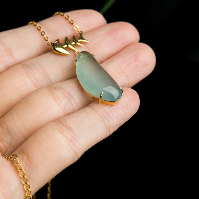 • [名  称] 18K冰种淡晴水翡翠福瓜项链