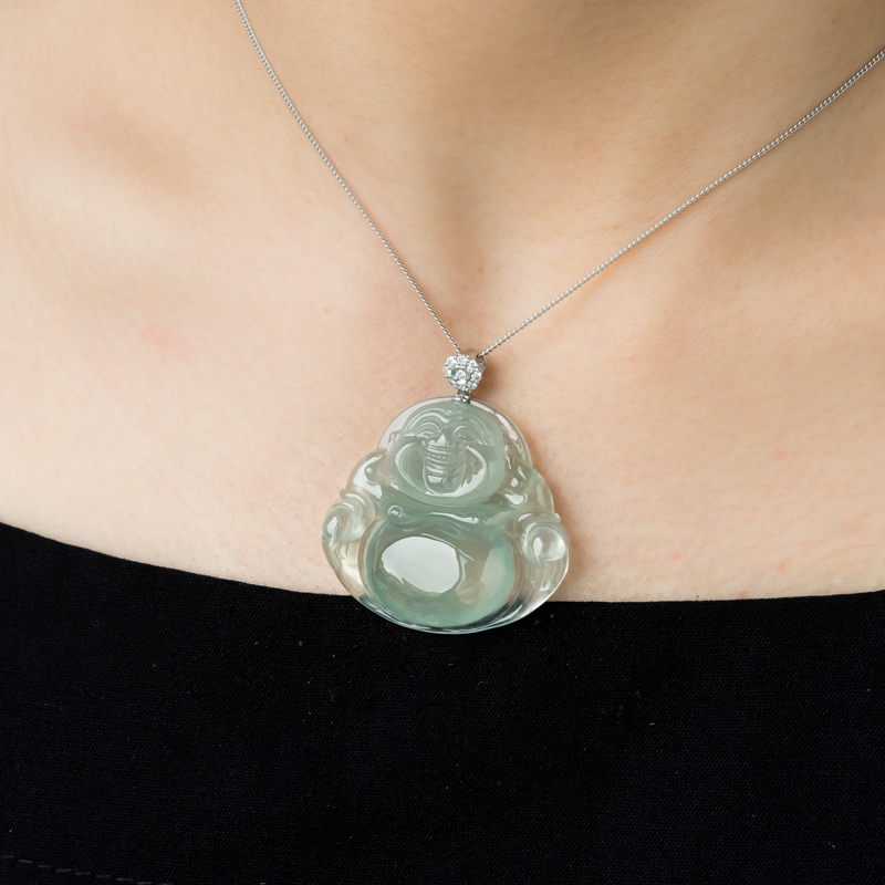 • 18K冰种晴水翡翠弥勒佛吊坠