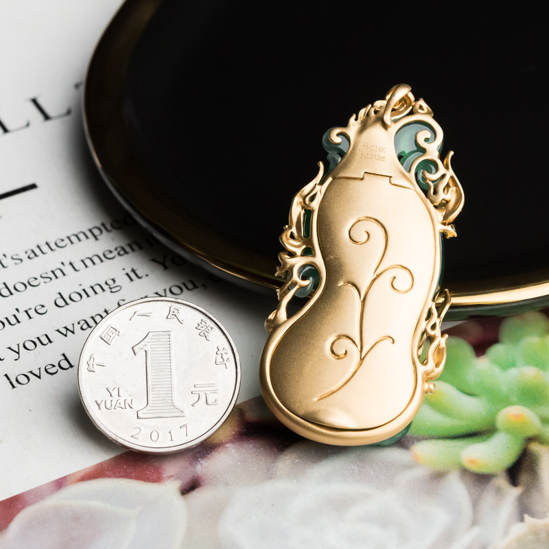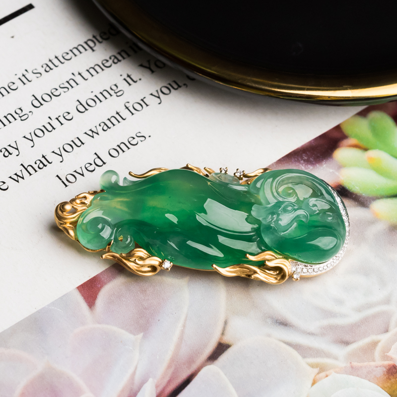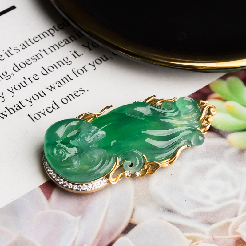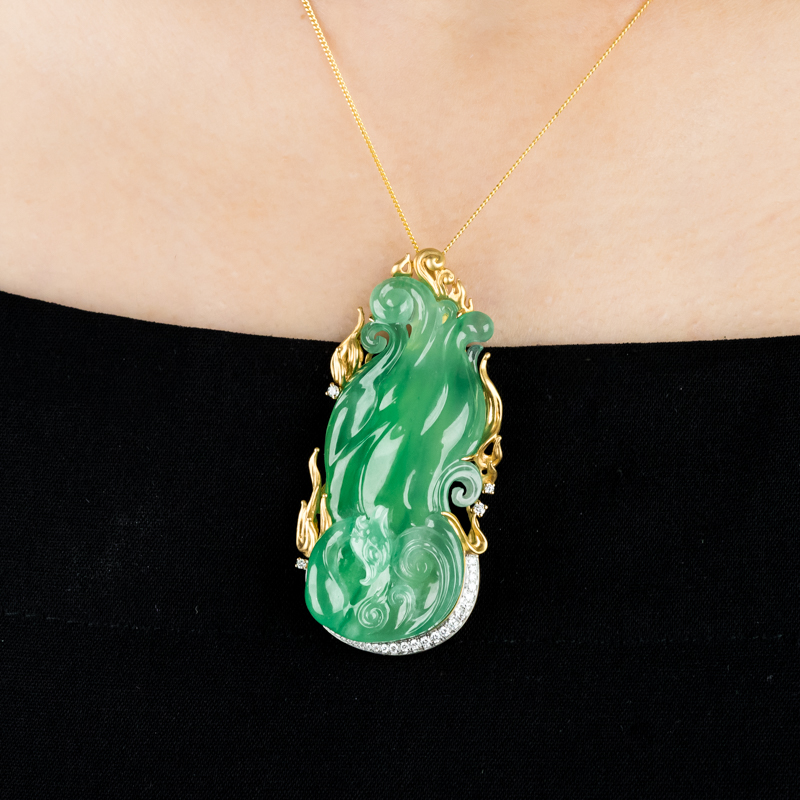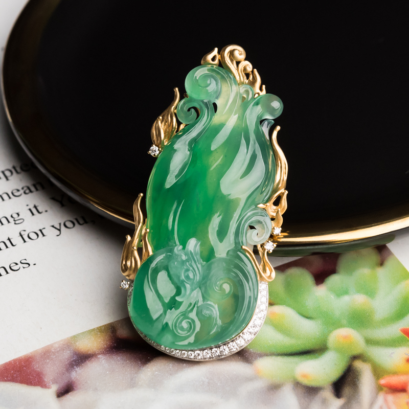 • 18K冰种翠绿翡翠凤凰吊坠
