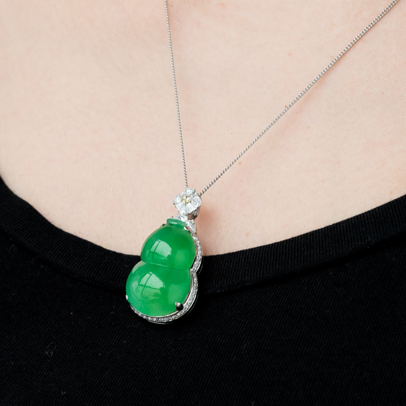• [名  称] 18K冰种翠绿翡翠福禄吊坠