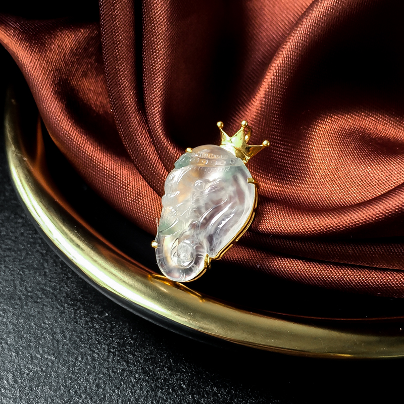 为了让珠宝的价值得到更大程度的体现,每一个作品都是根据料子本身做专业的设计,让每件作品都有灵魂。设计好以后会根据设计创意做专业的镶嵌或雕刻,确保每个接口都严丝合缝,每一刀都流畅自如