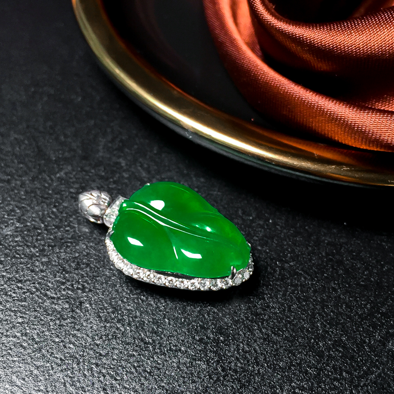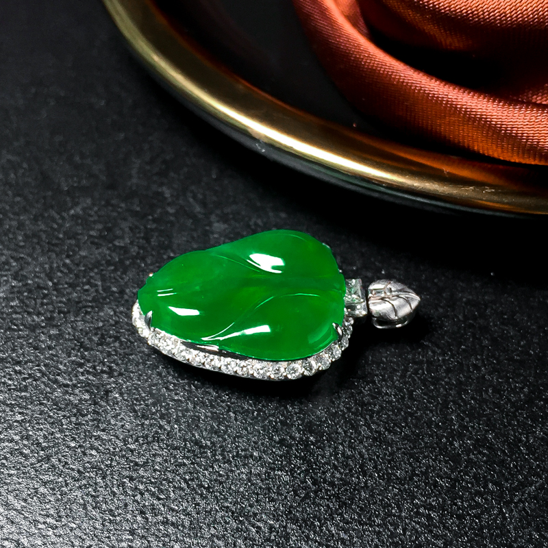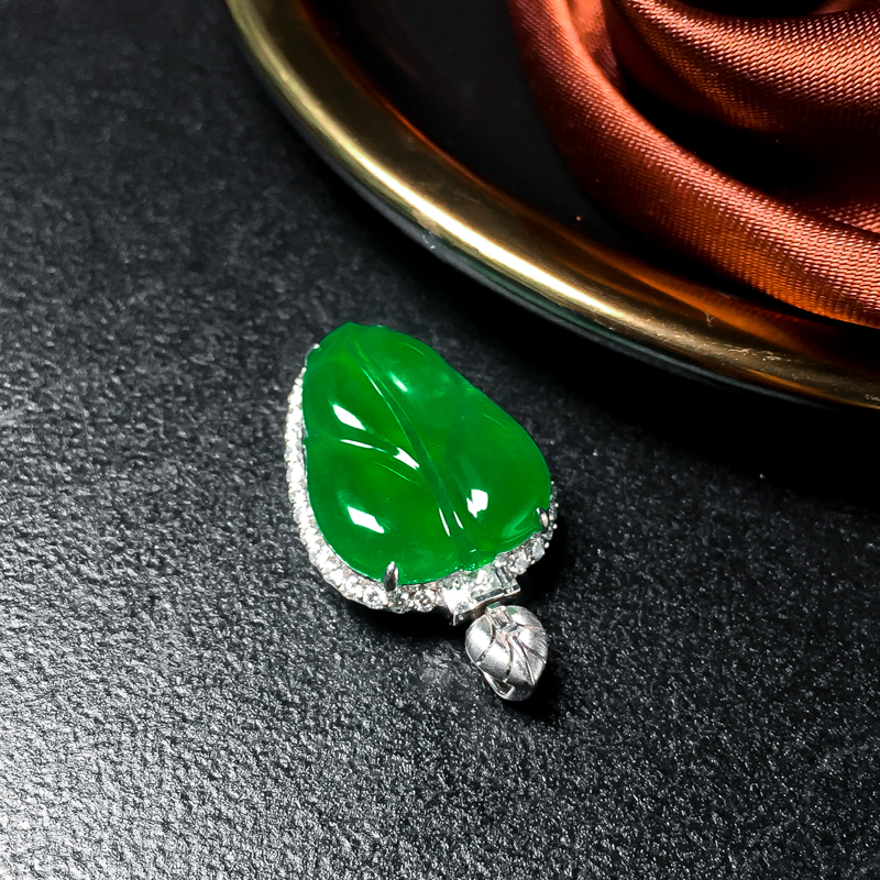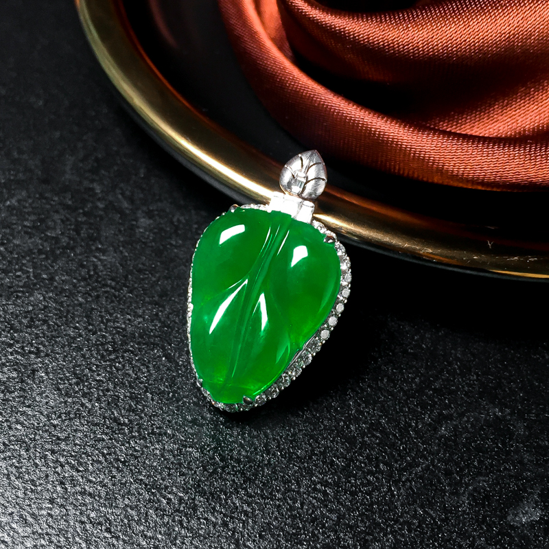 • 18K冰种阳绿翡翠金枝玉叶吊坠