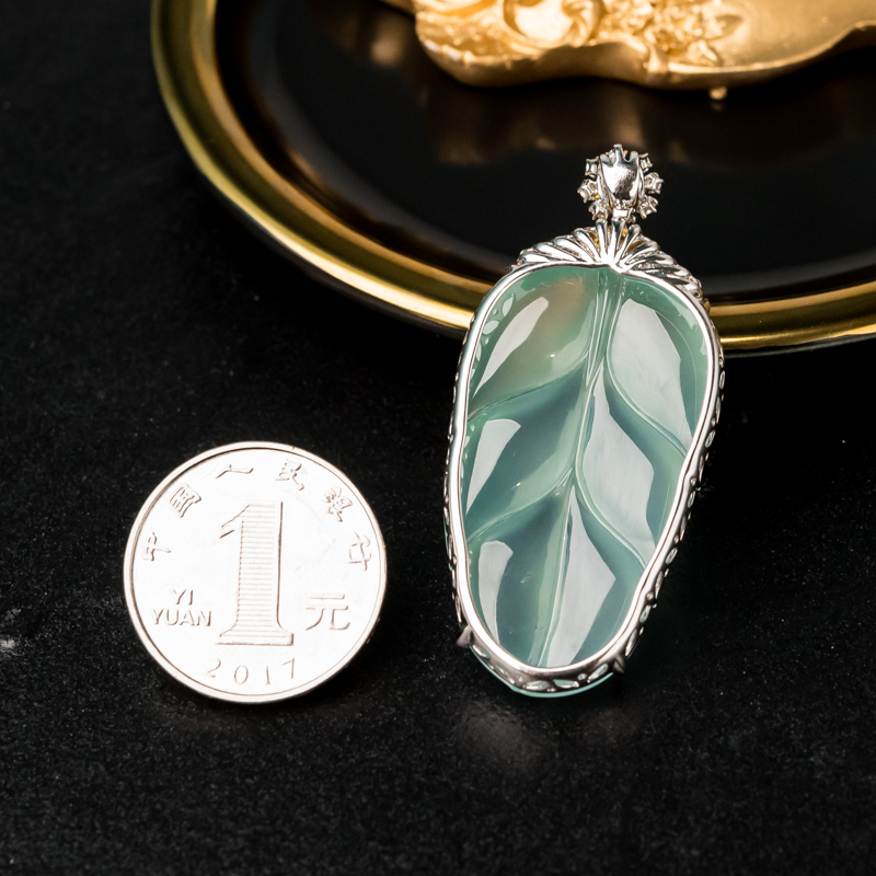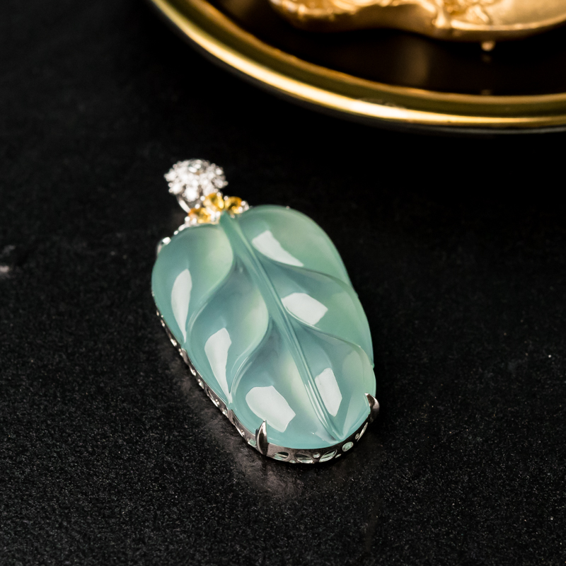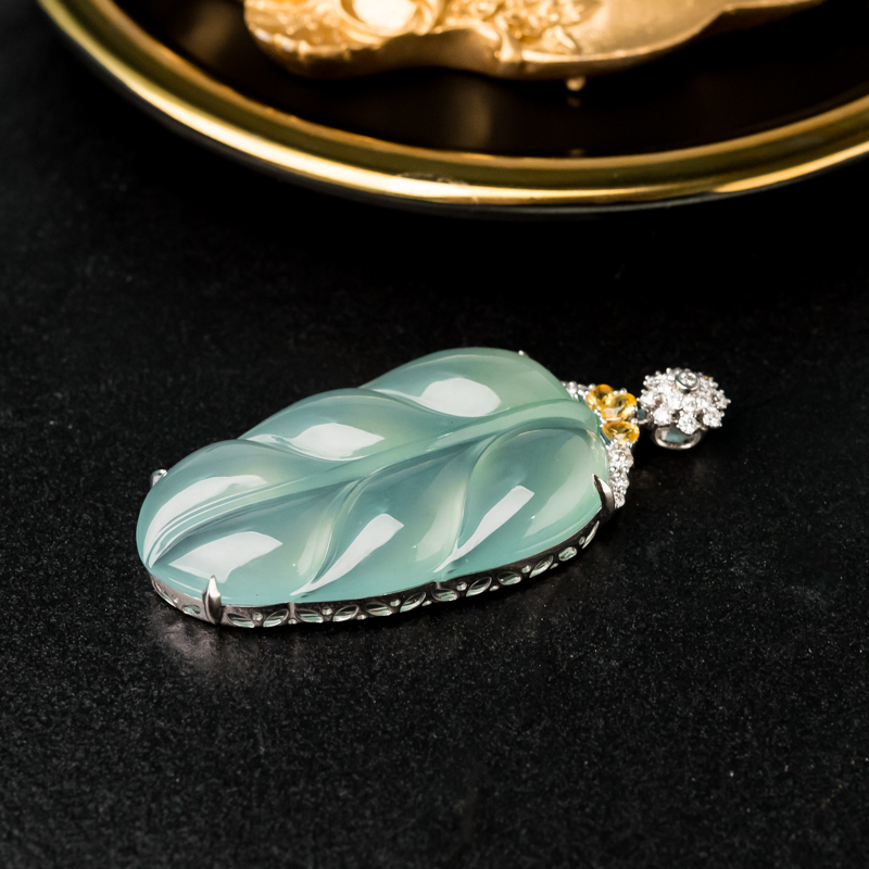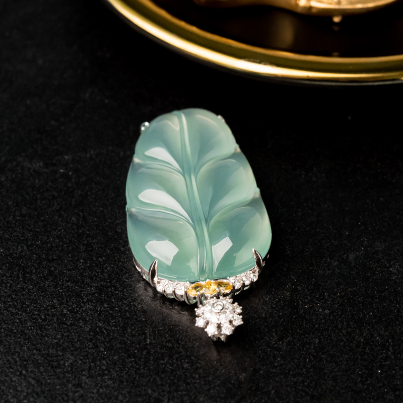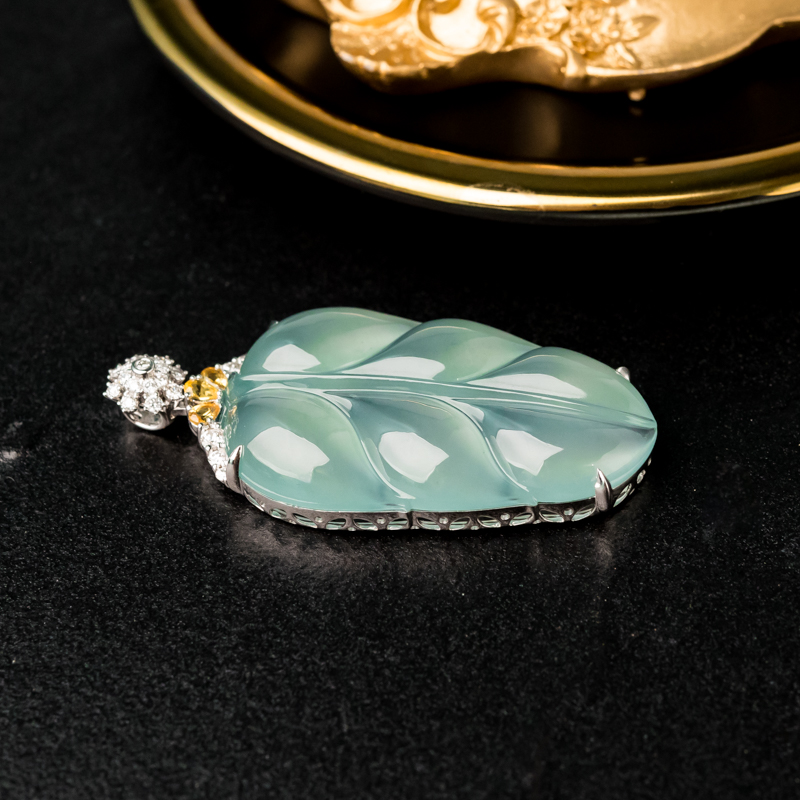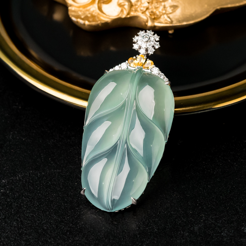 • 18K冰种晴水翡翠金枝玉叶吊坠