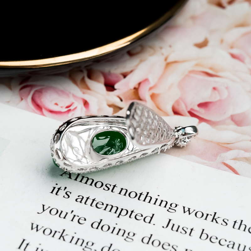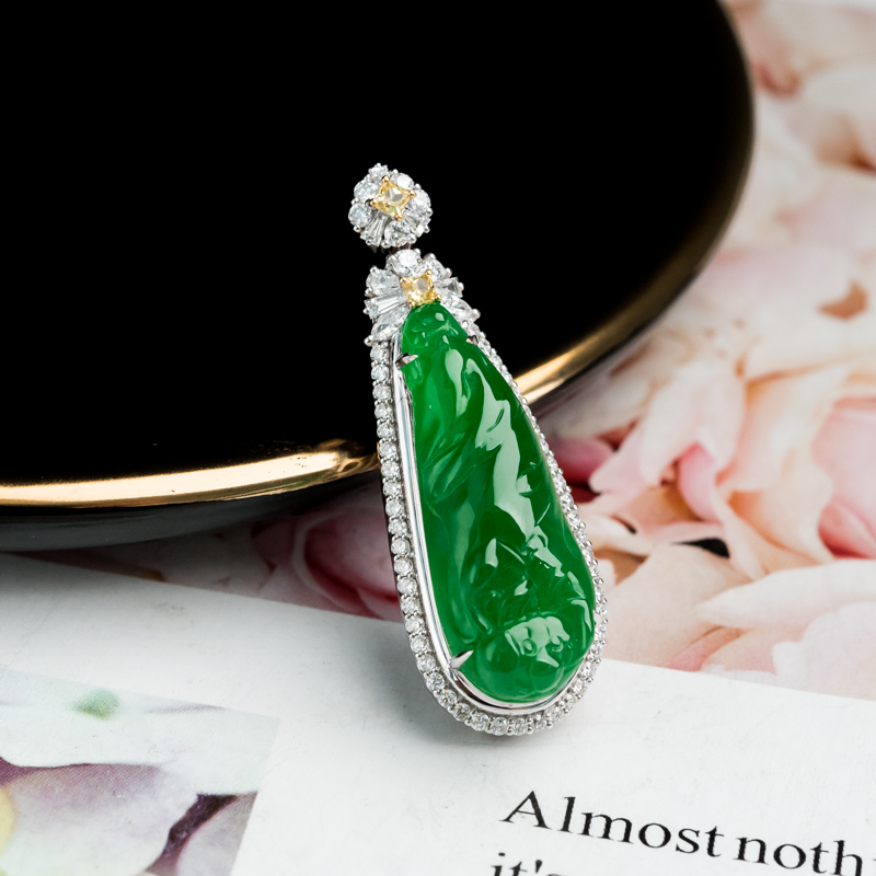 • [名  称] 18K冰种阳绿翡翠幽莲吊坠