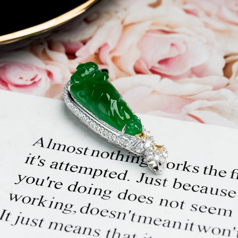 为了让珠宝的价值得到更大程度的体现,每一个作品都是根据料子本身做专业的设计,让每件作品都有灵魂。设计好以后会根据设计创意做专业的镶嵌或雕刻,确保每个接口都严丝合缝,每一刀都流畅自如