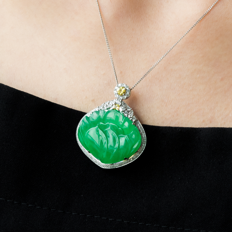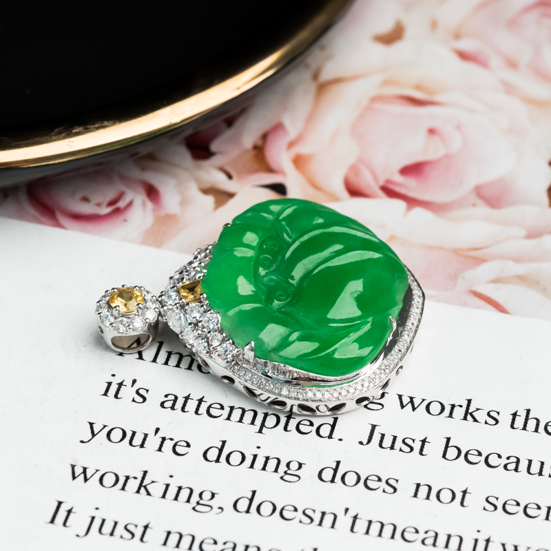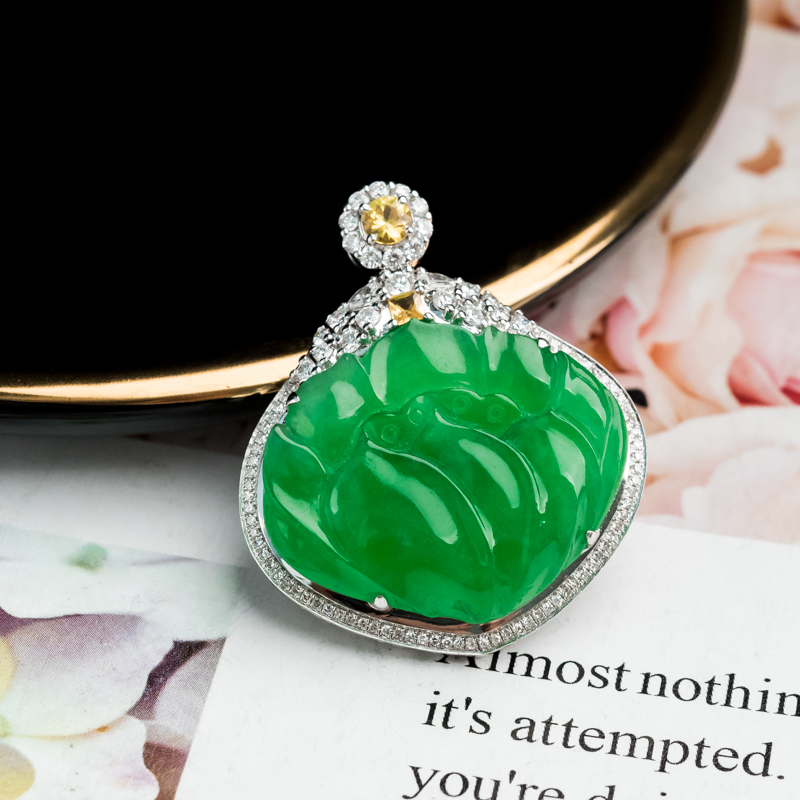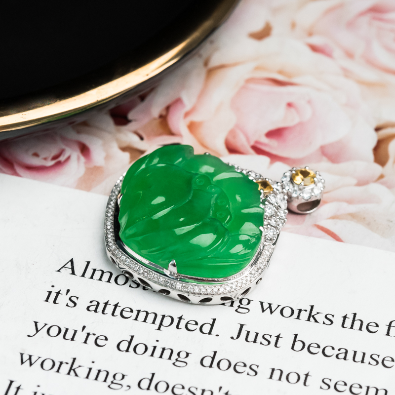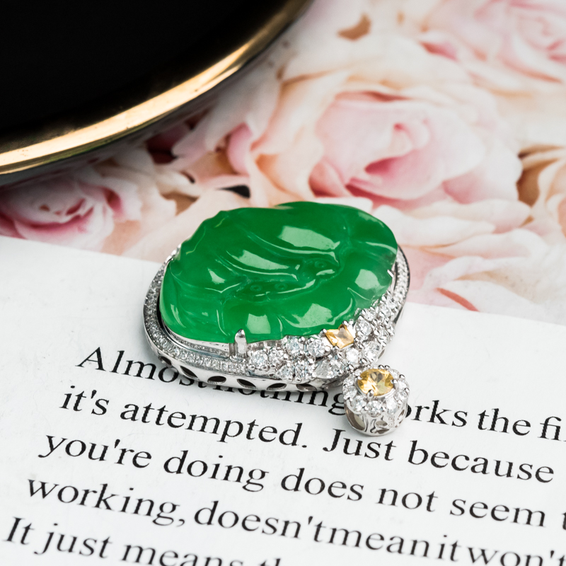• [名  称] 18K冰种翠绿翡翠幽莲吊坠