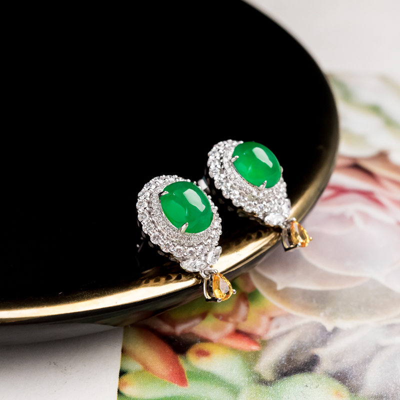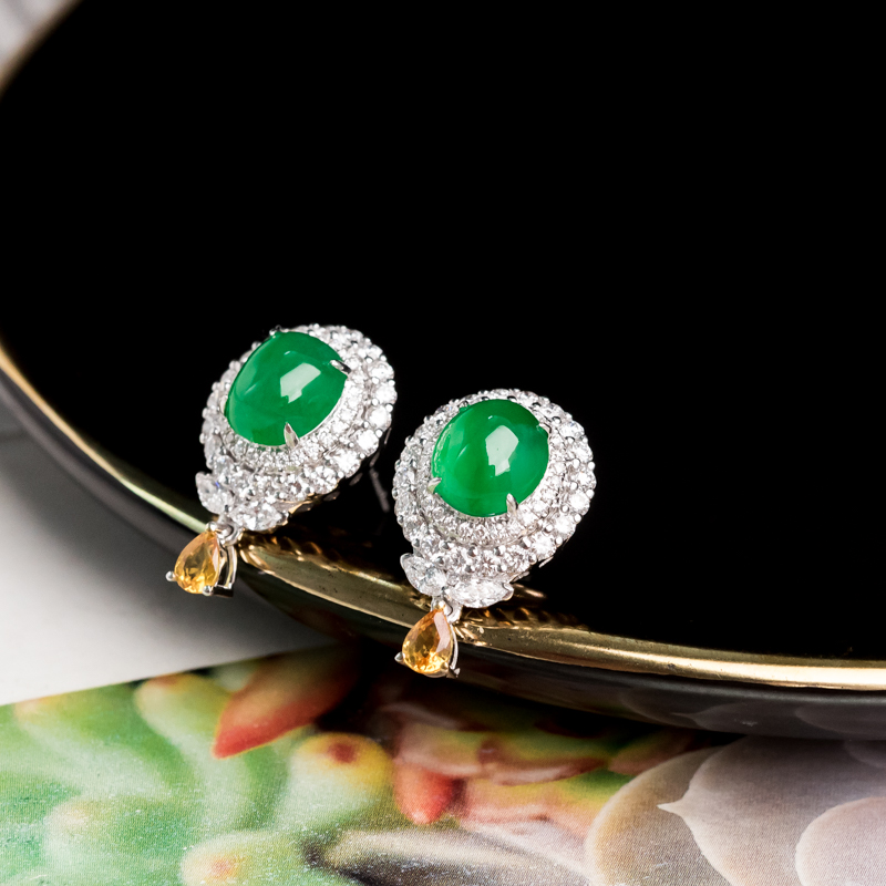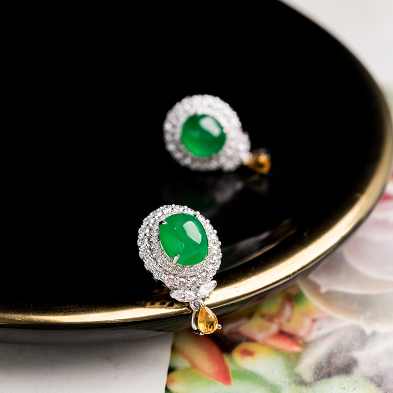 • 18K冰种阳绿翡翠耳钉