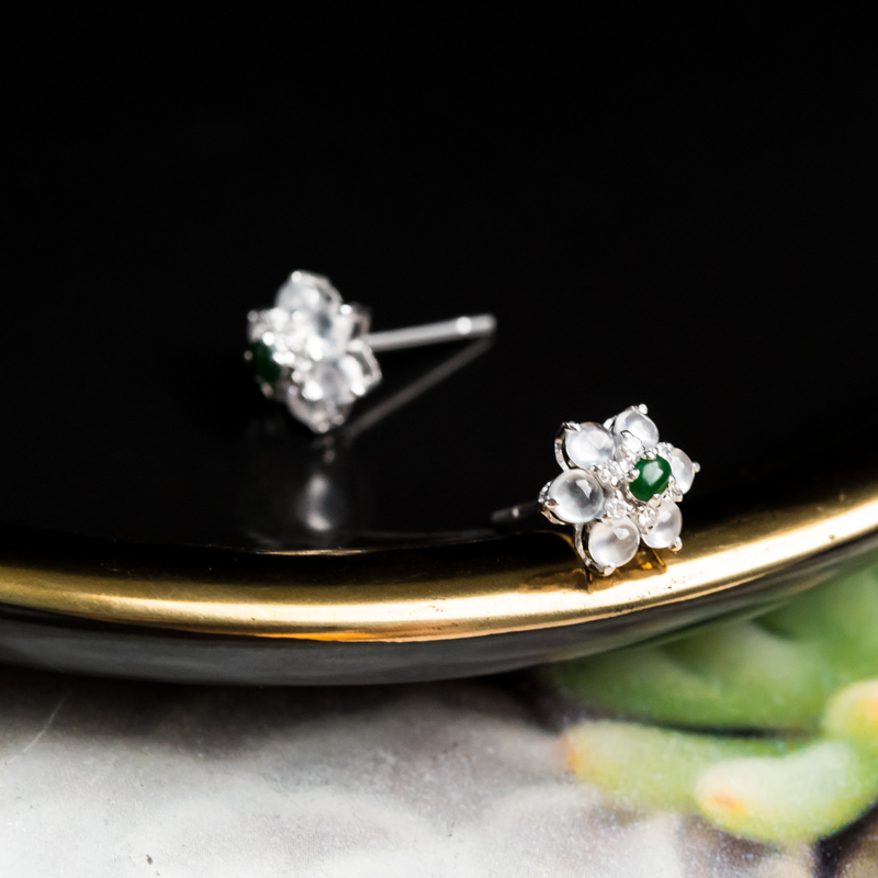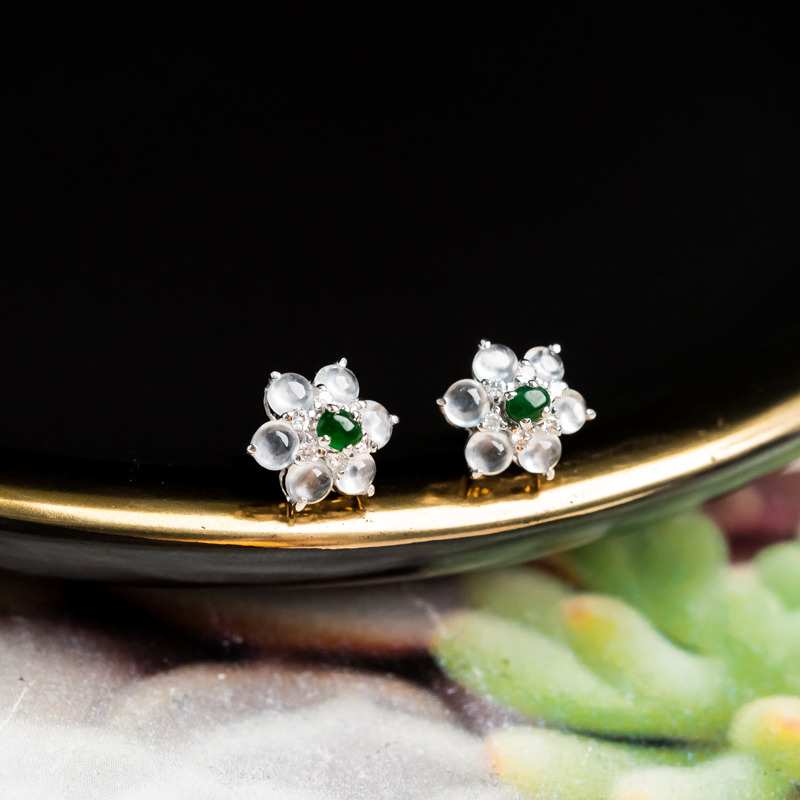 • 18K冰种翡翠耳钉