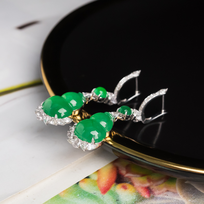 • [名  称] 18K冰种阳绿翡翠福禄耳坠