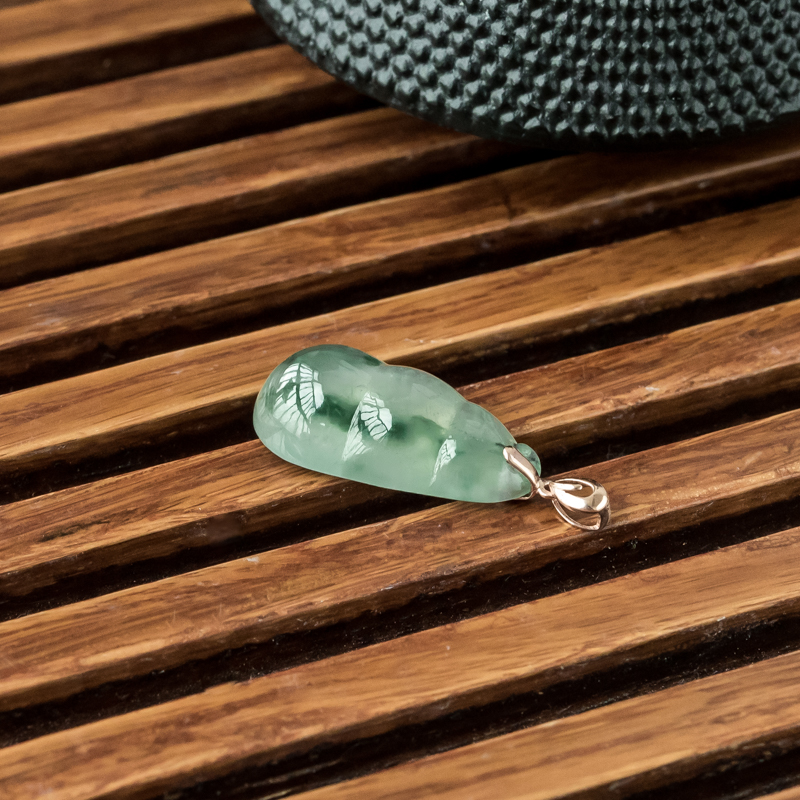 • 18K冰种飘花翡翠连中三元吊坠