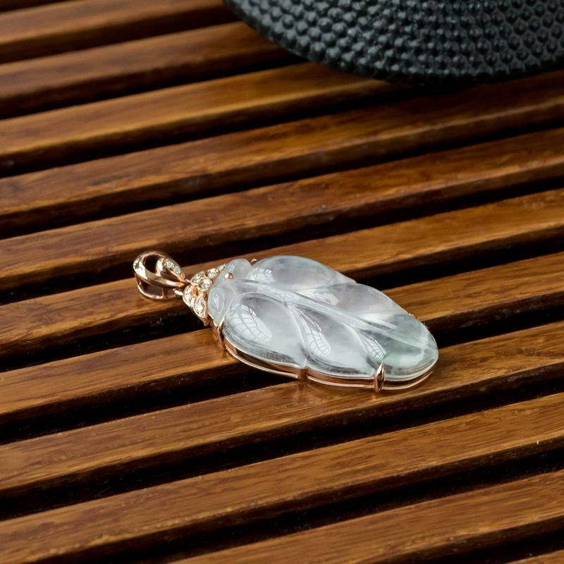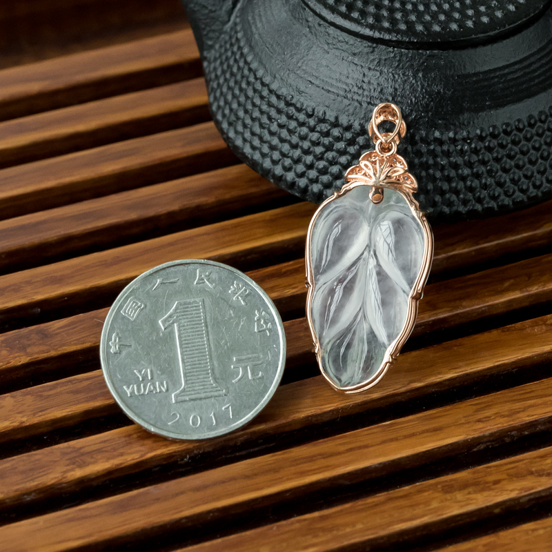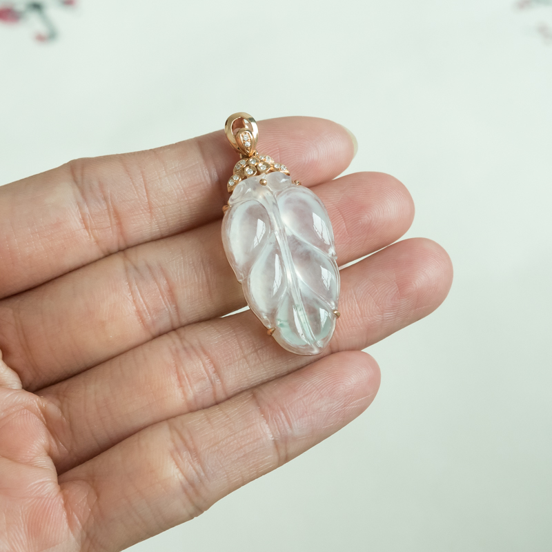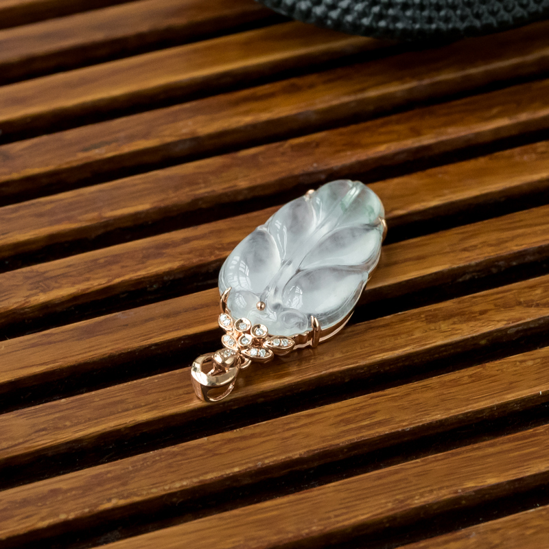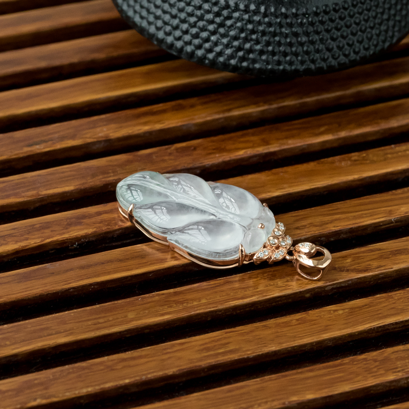 • 18K冰种飘花翡翠金枝玉叶吊坠