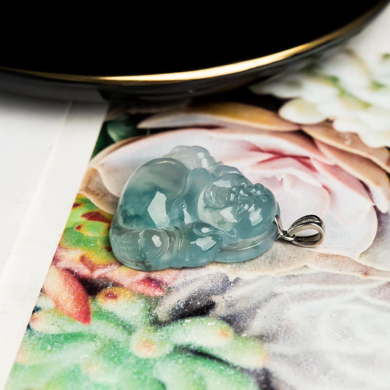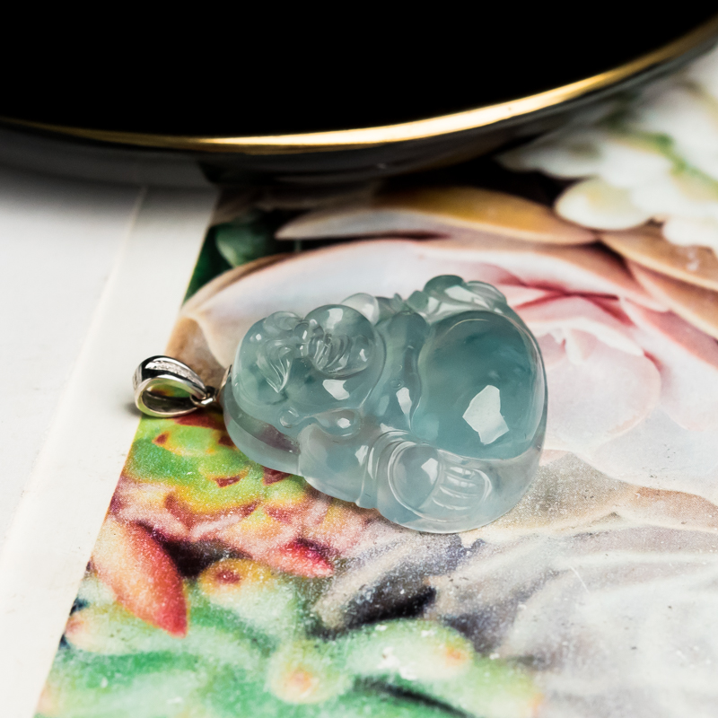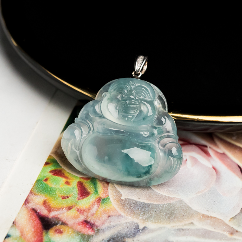 • 18K冰种飘花翡翠弥勒佛吊坠