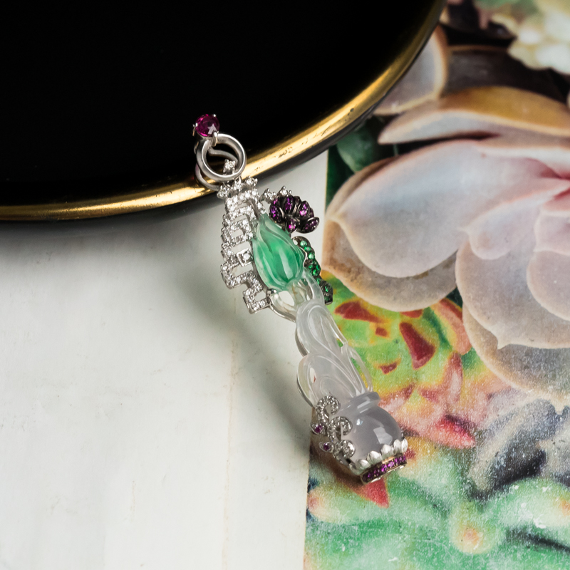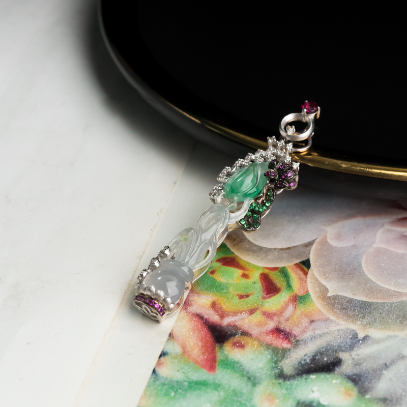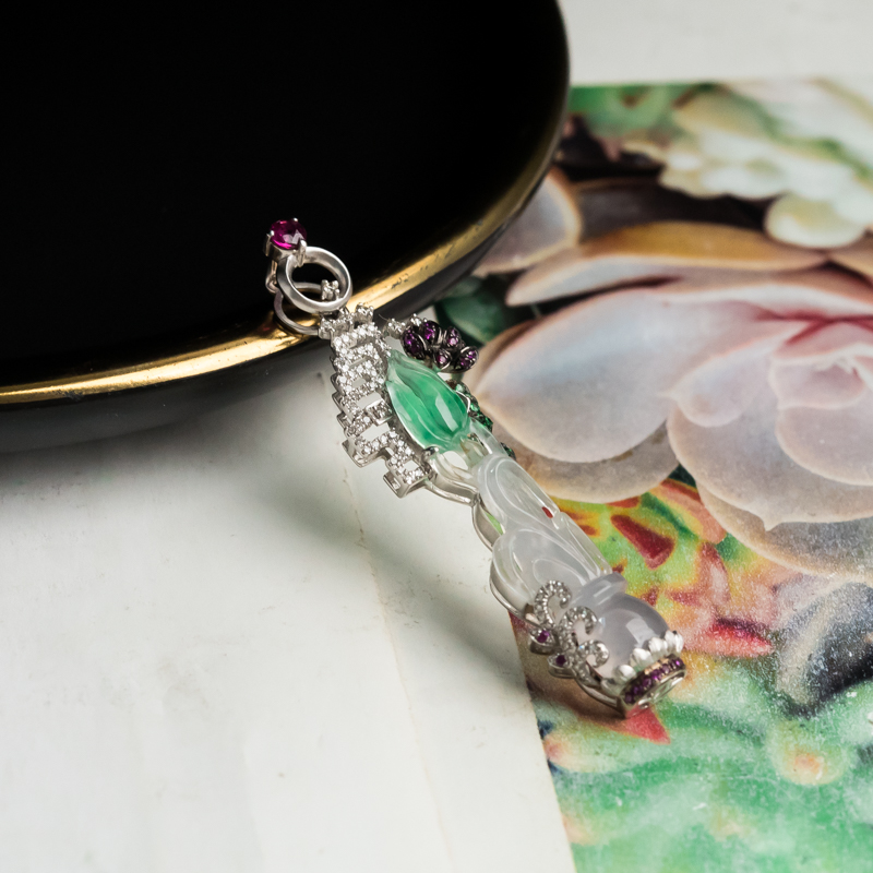 • 18K冰种飘翠翡翠一枝独秀吊坠