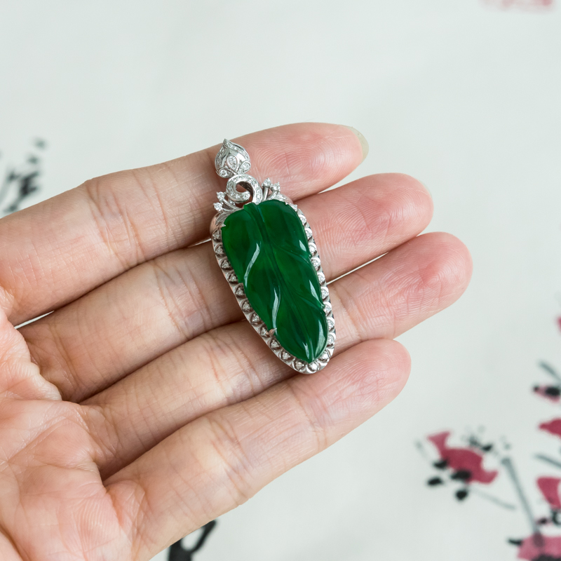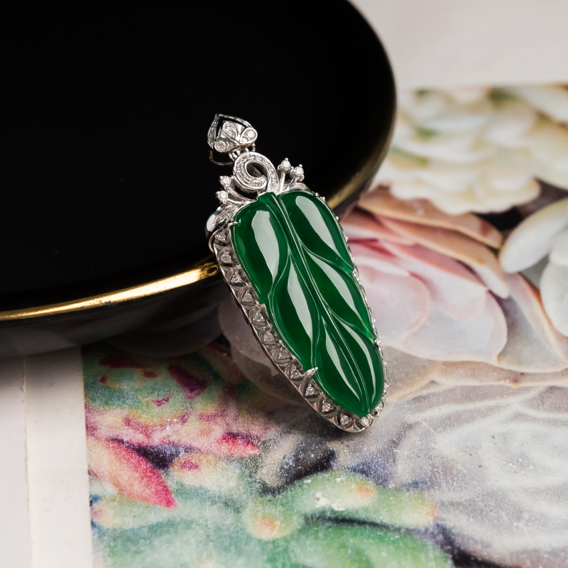 • 18K冰种翠绿翡翠金枝玉叶吊坠