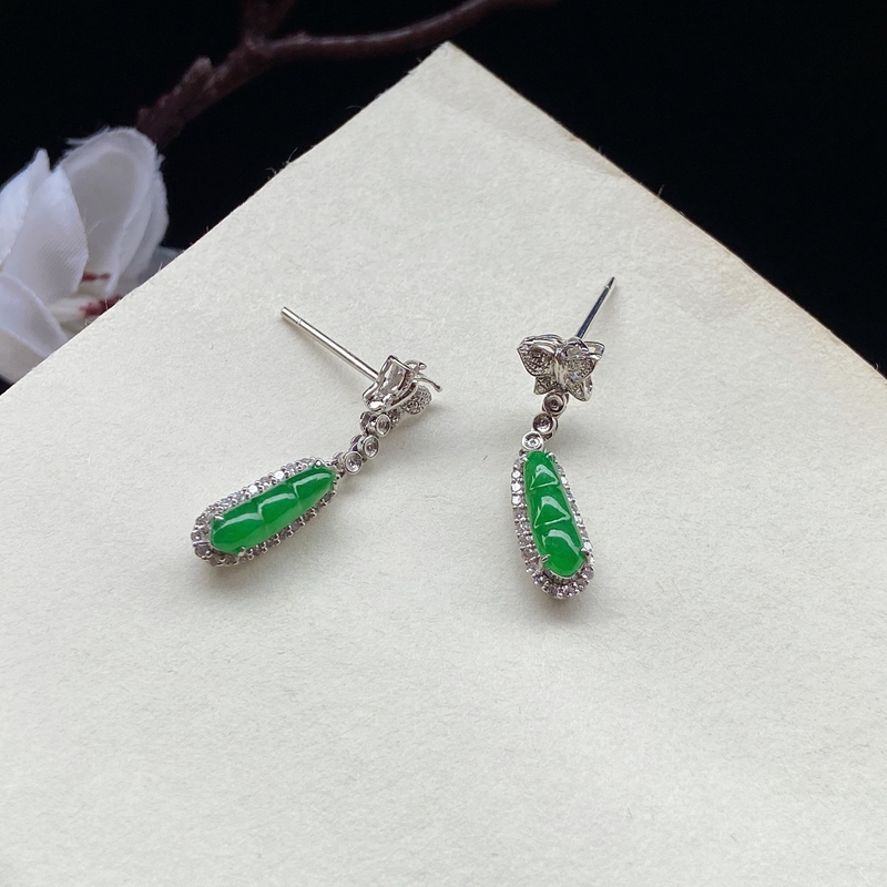 • [名  称] 18K冰种翠绿翡翠福豆耳坠