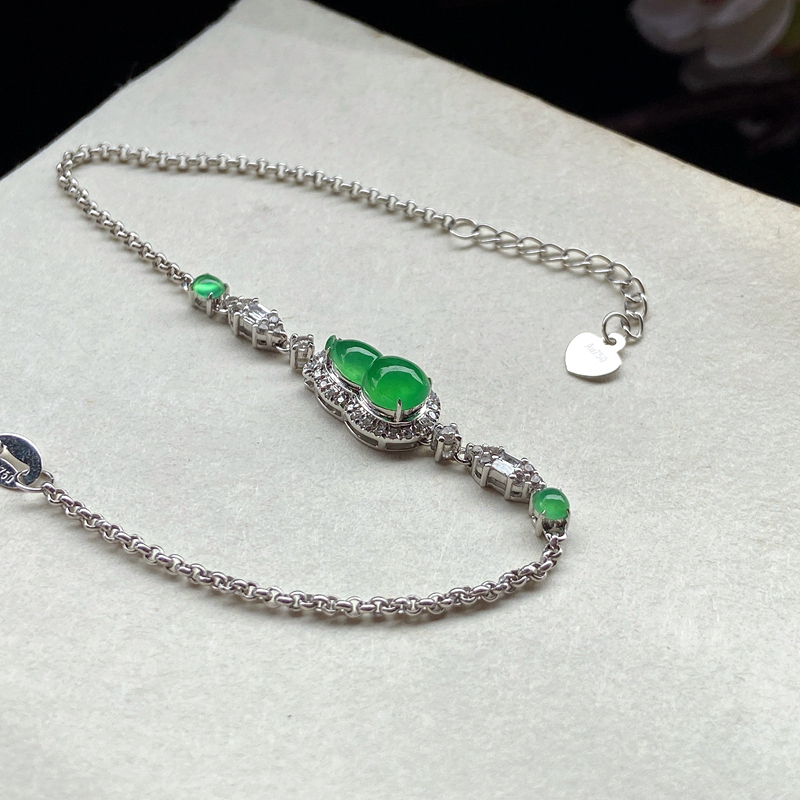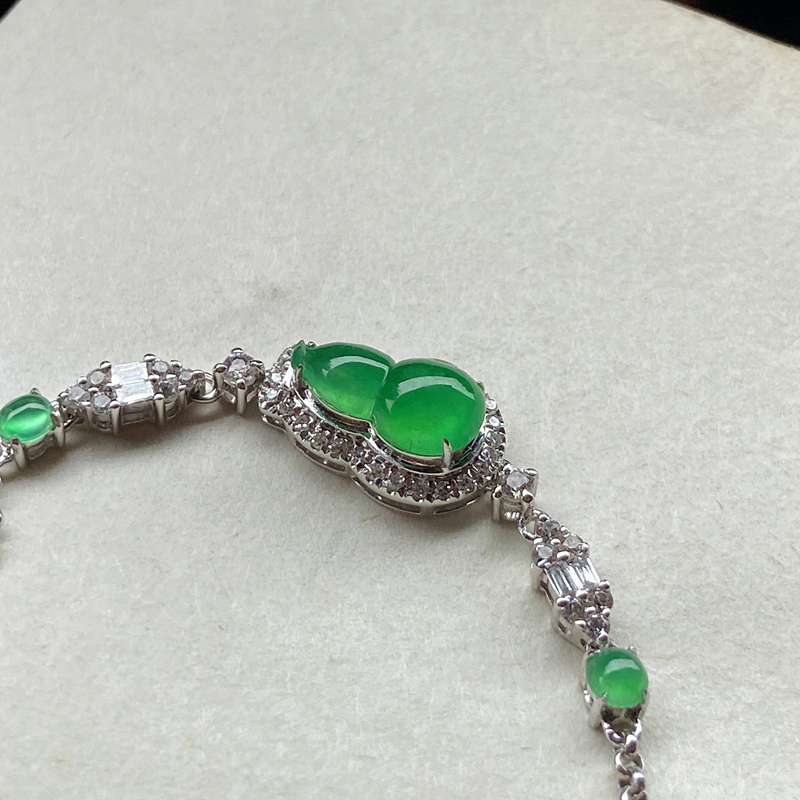 • 18K冰种阳绿翡翠葫芦手链