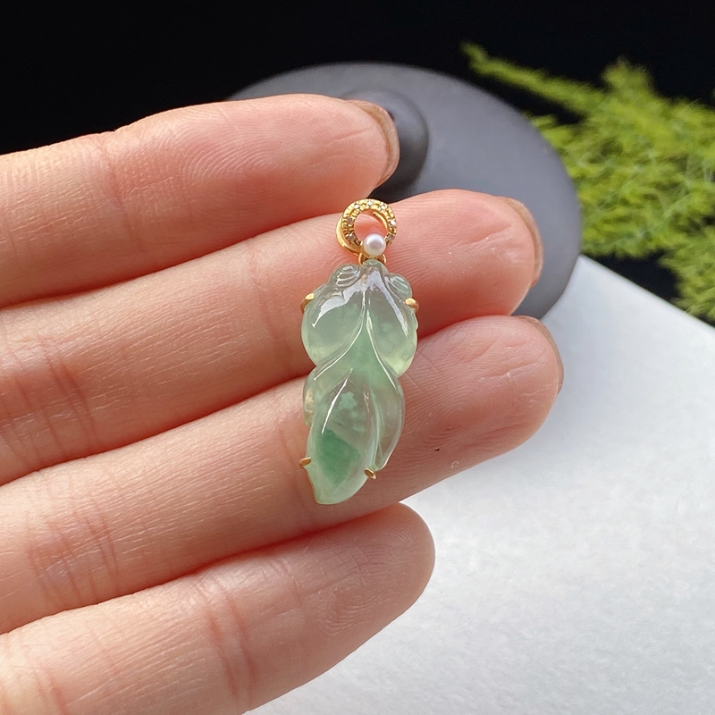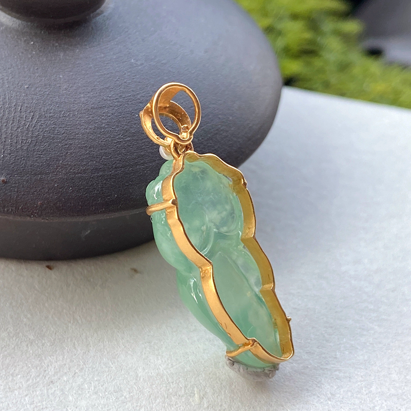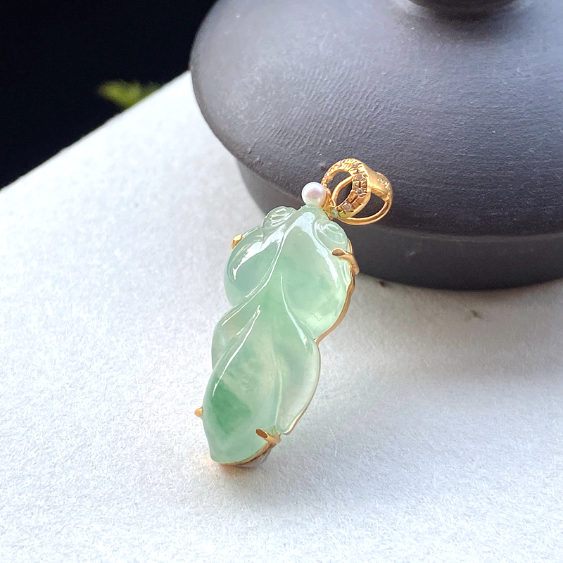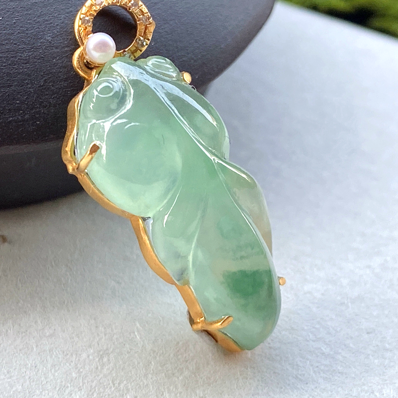 • 18K冰种飘花翡翠金鱼吊坠