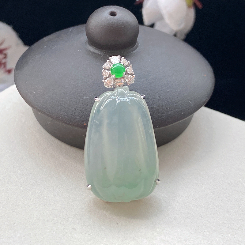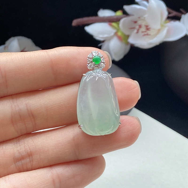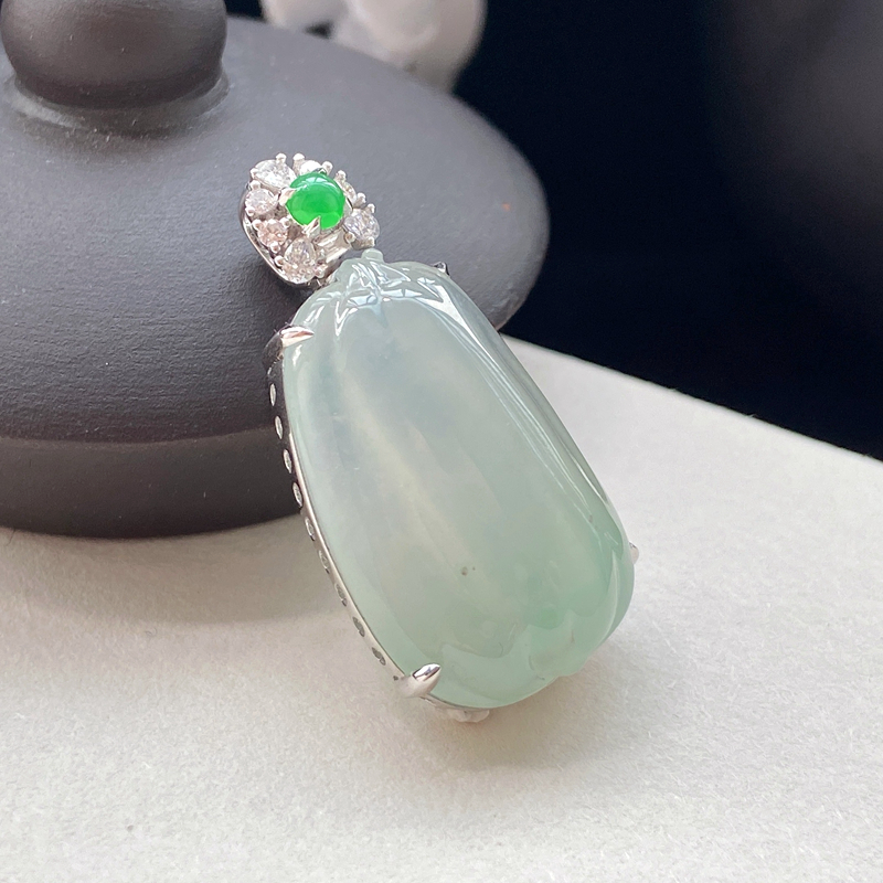 • 18K冰种浅绿翡翠福瓜吊坠