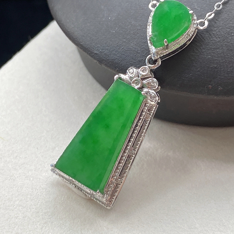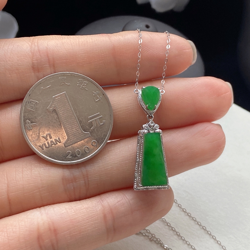 • [名  称] 18K冰种阳绿翡翠平安无事项链
