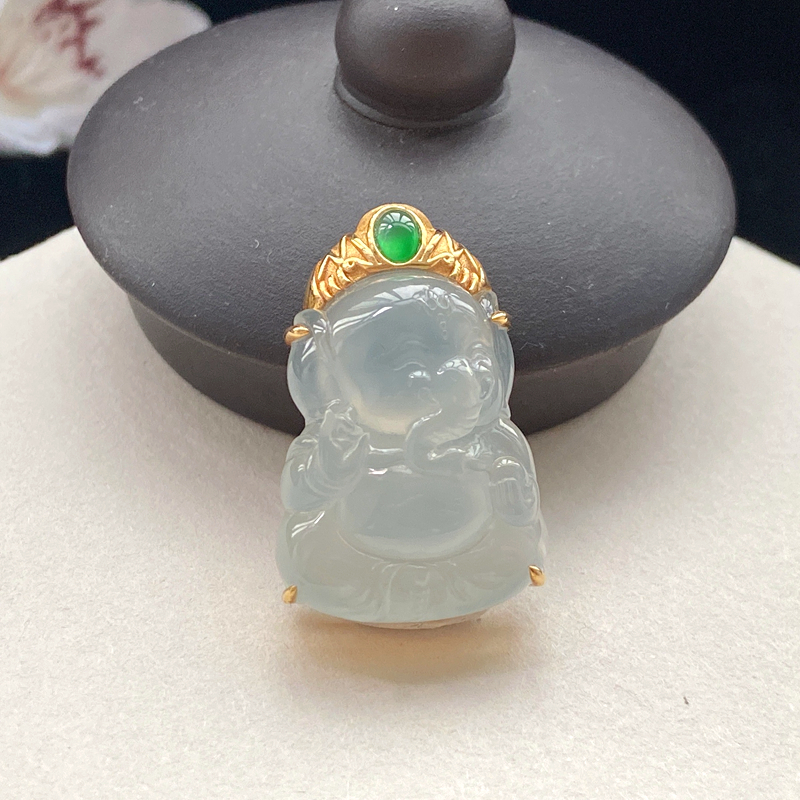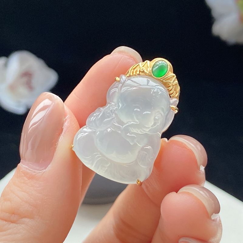 • 18K冰种翡翠吉祥吊坠