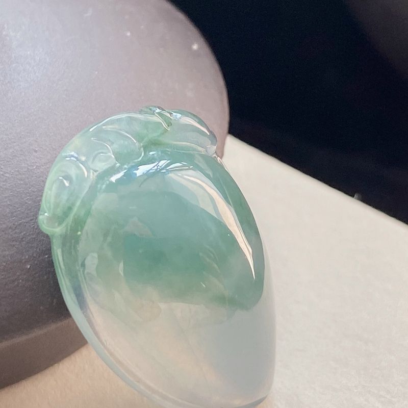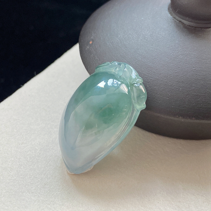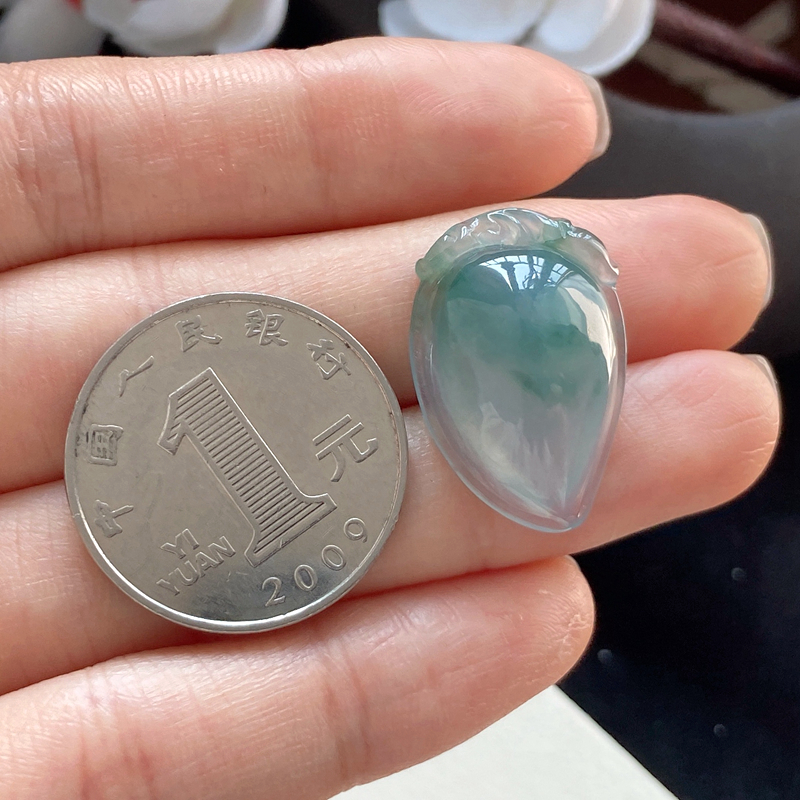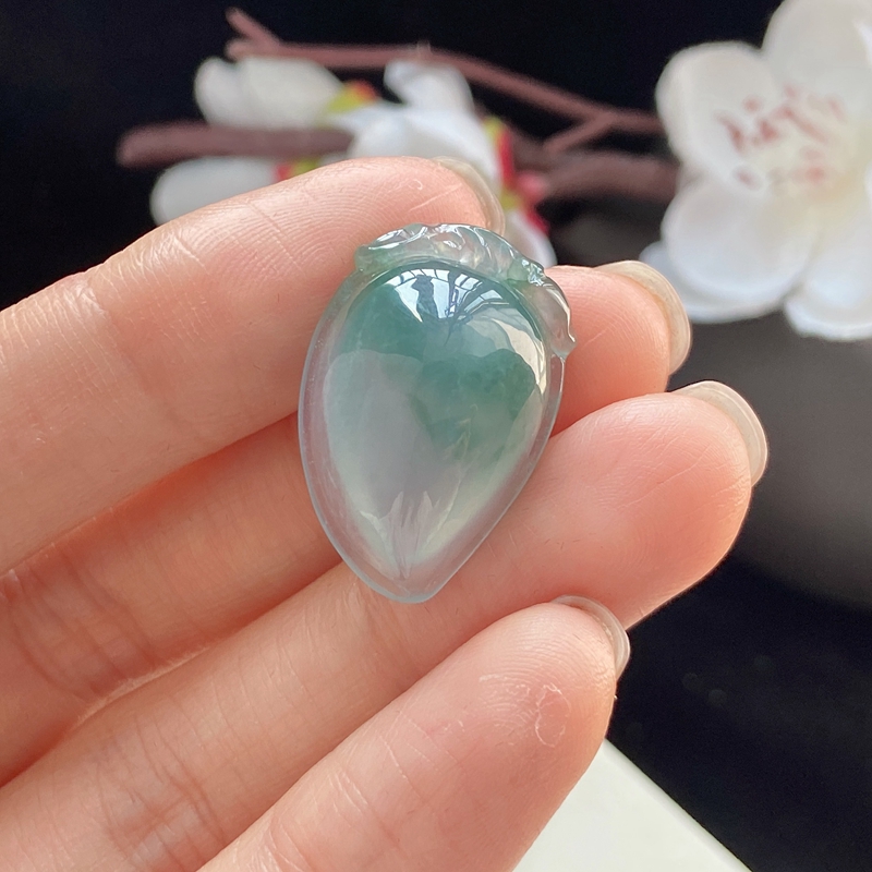 • 冰种飘花翡翠寿桃吊坠
