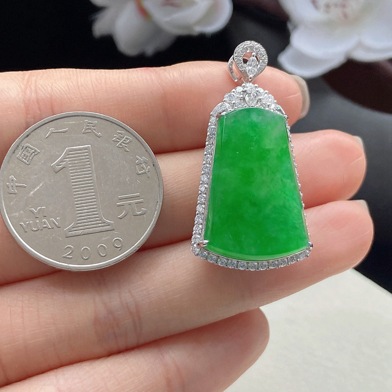• 18K冰种阳绿翡翠平安无事吊坠