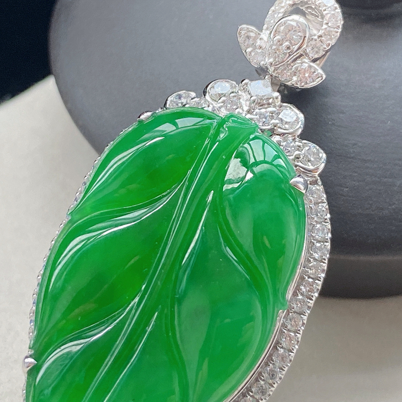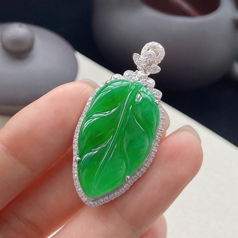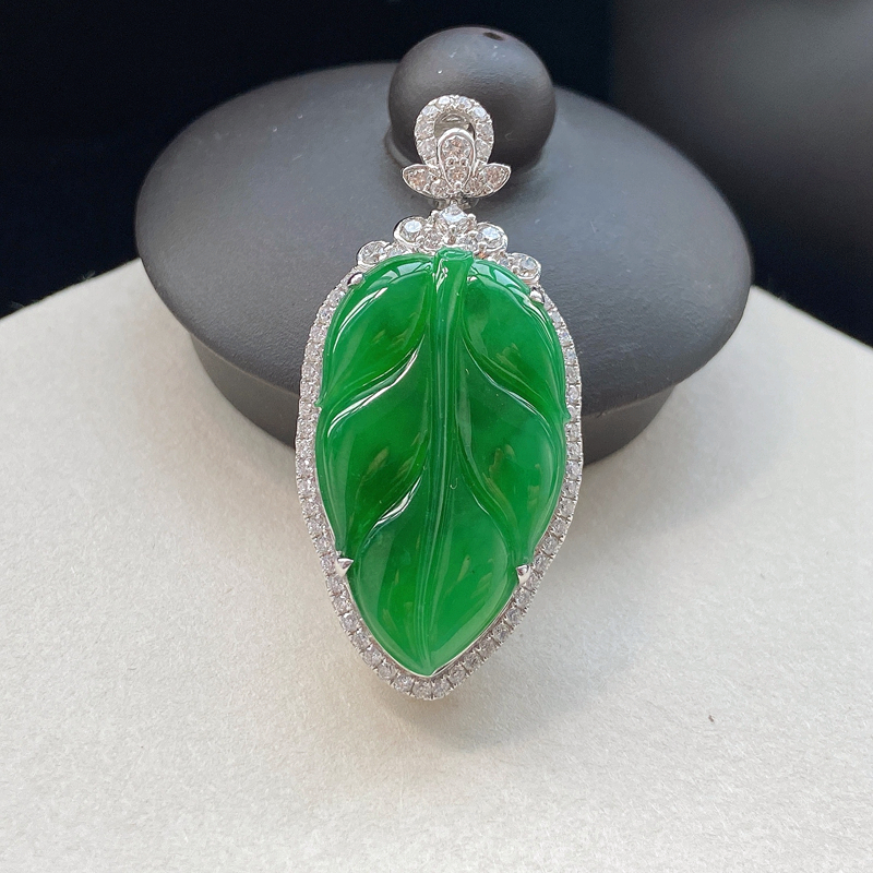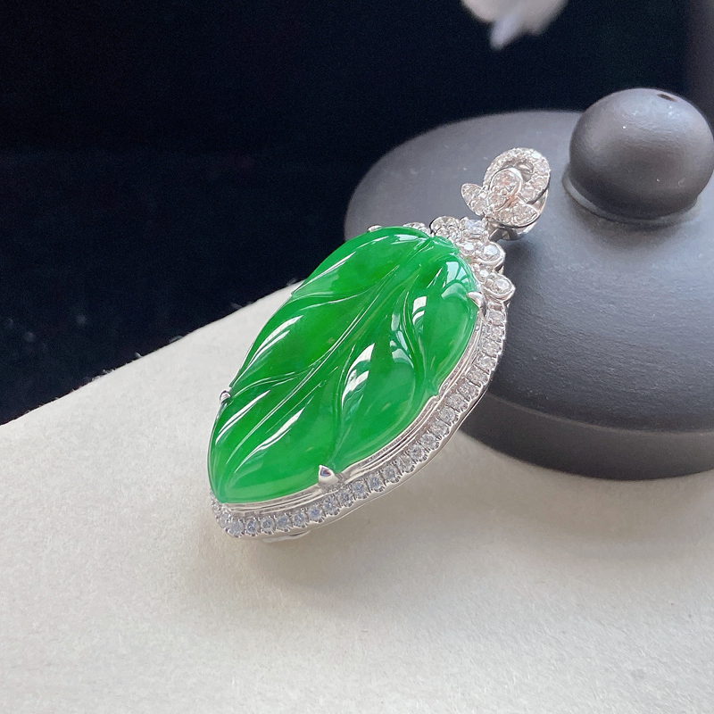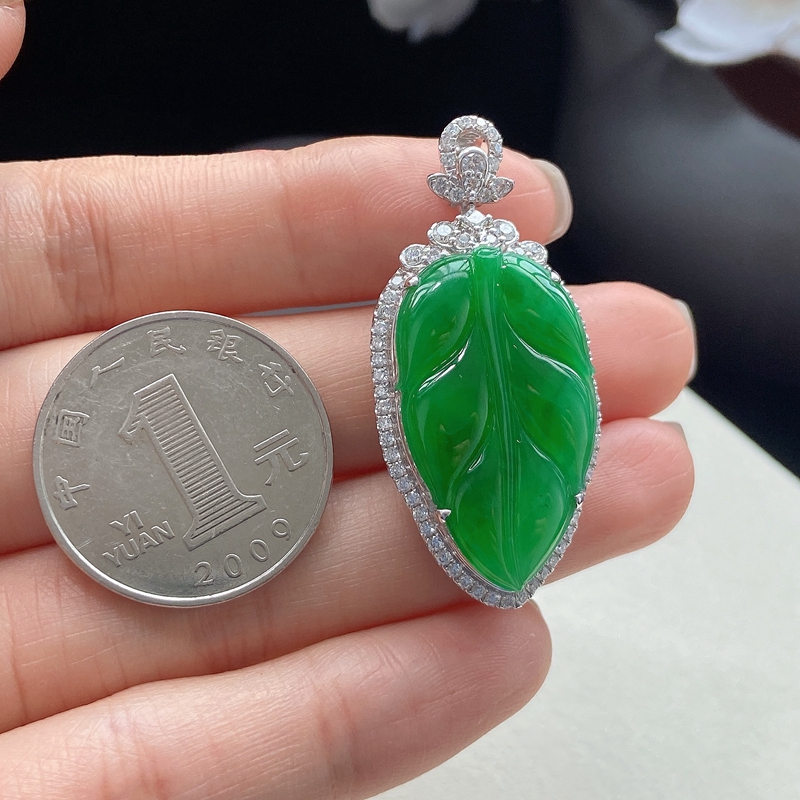 • [名  称] 18K冰种翠绿翡翠叶子吊坠
