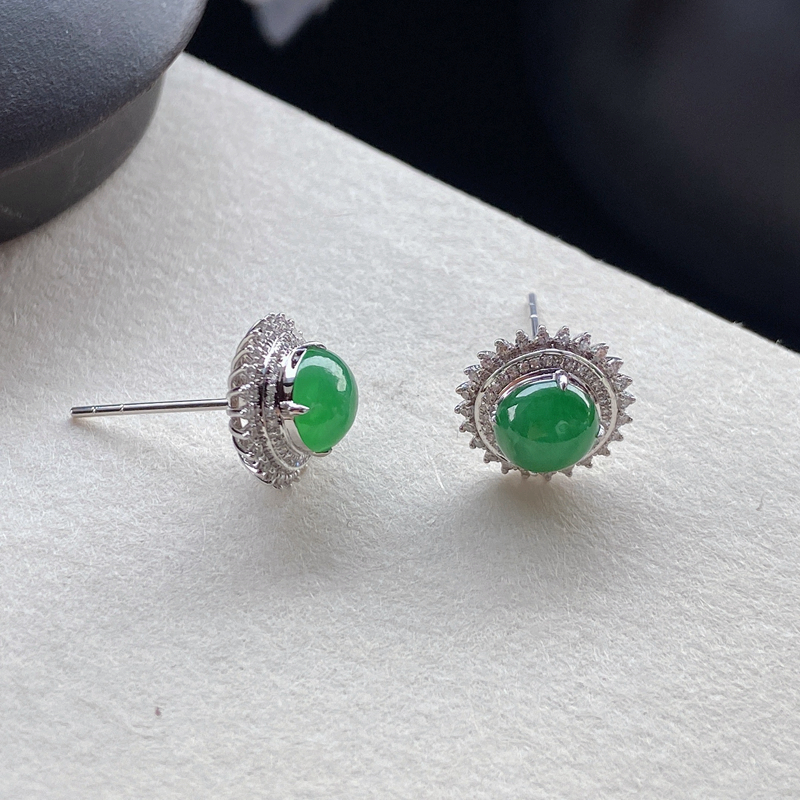 • [名  称] 18K冰种翠绿翡翠耳钉