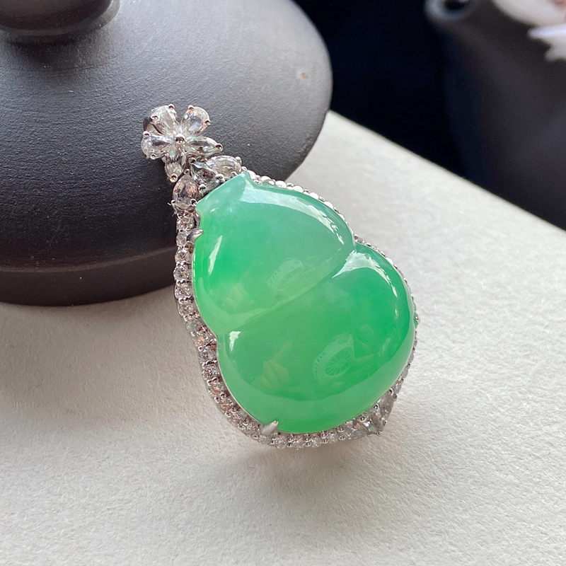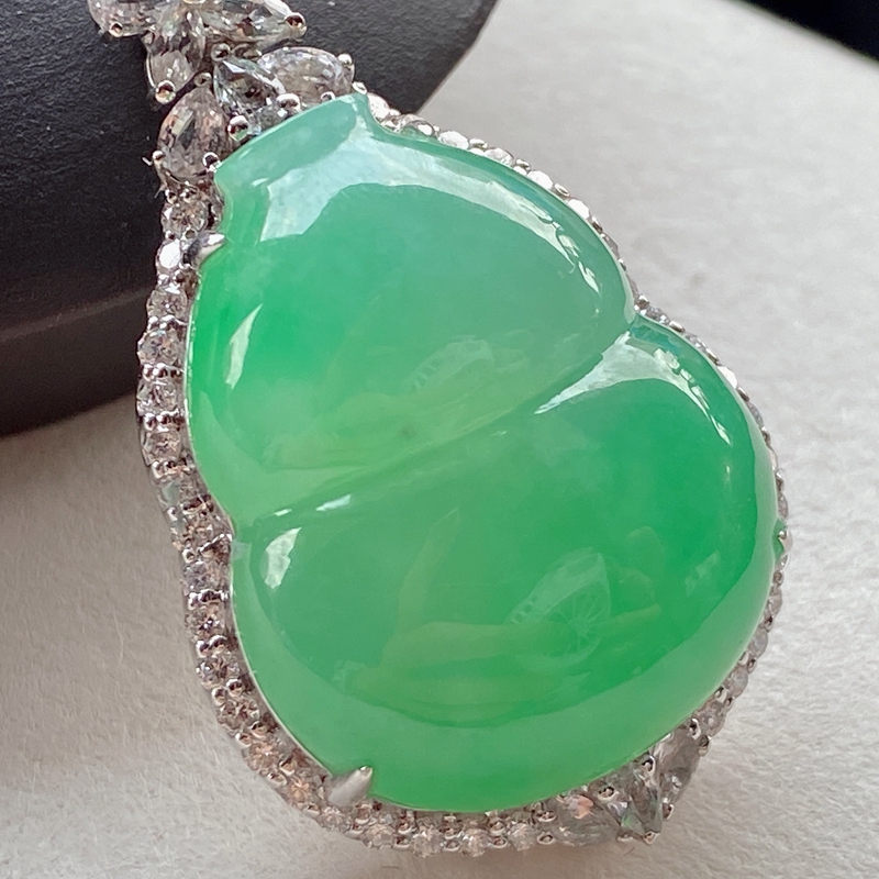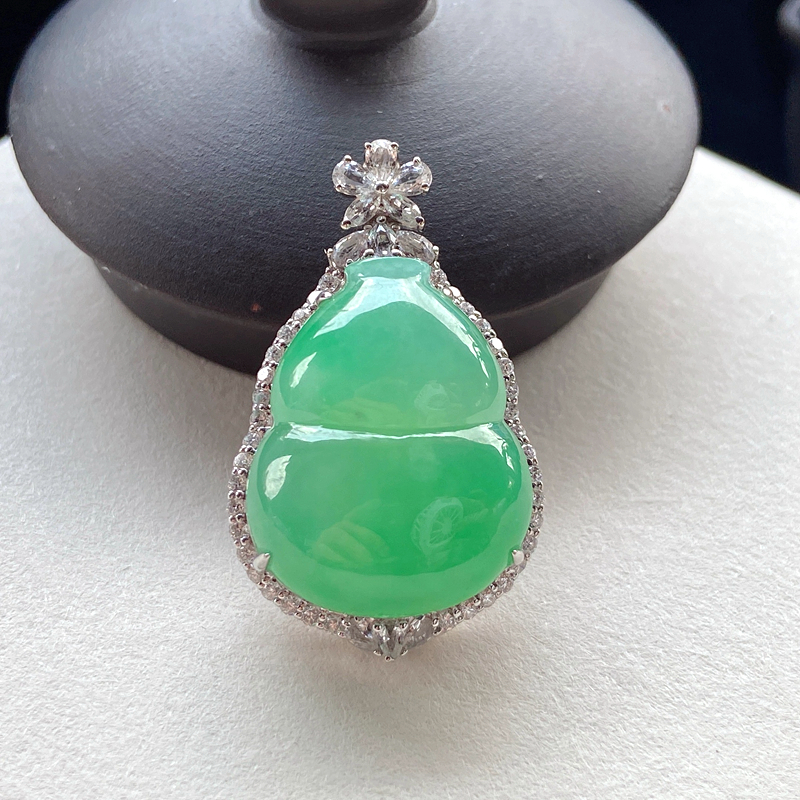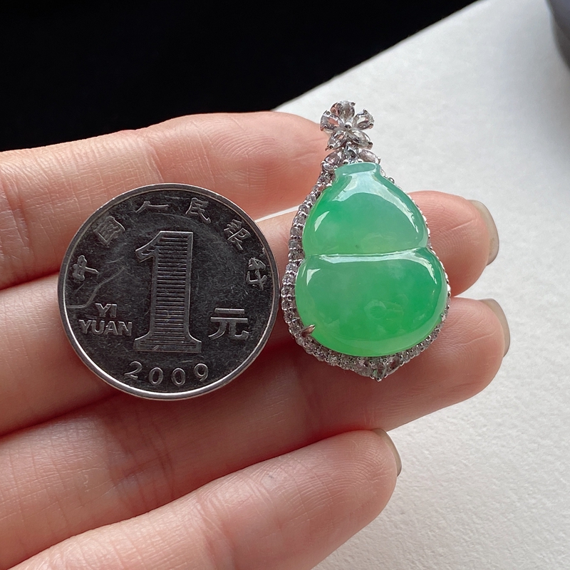 • 18K冰种浅阳绿翡翠葫芦吊坠