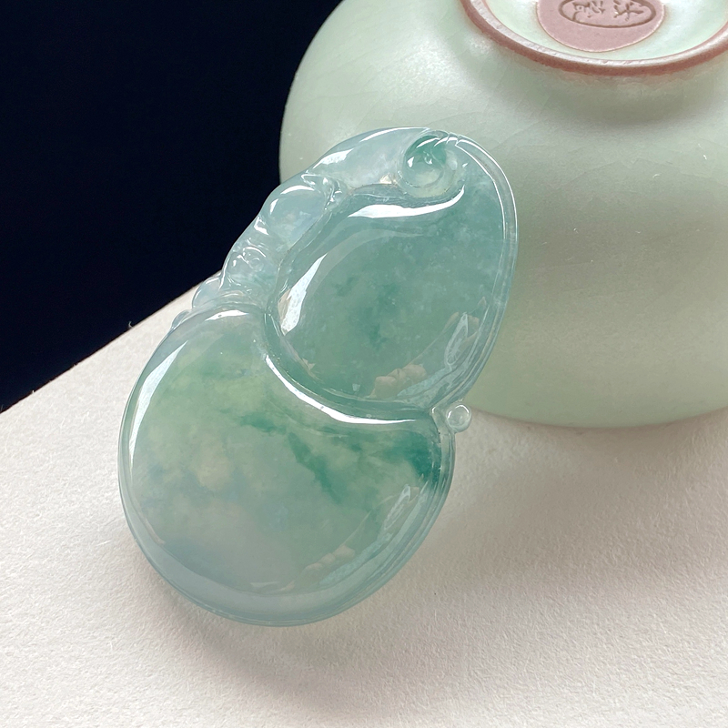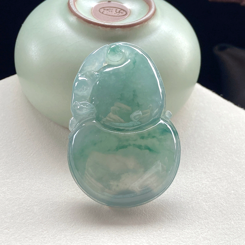 • 冰种飘花翡翠葫芦吊坠