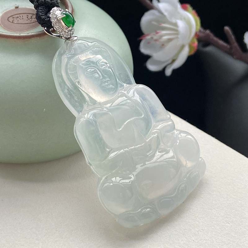 • 18K冰种翡翠观音吊坠