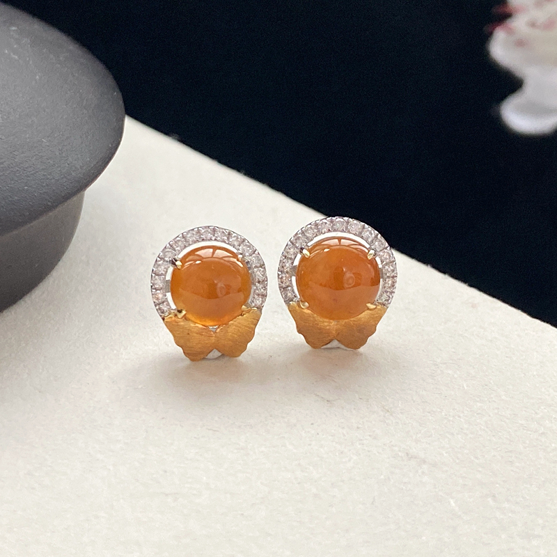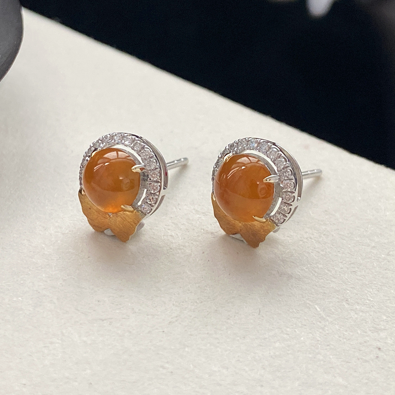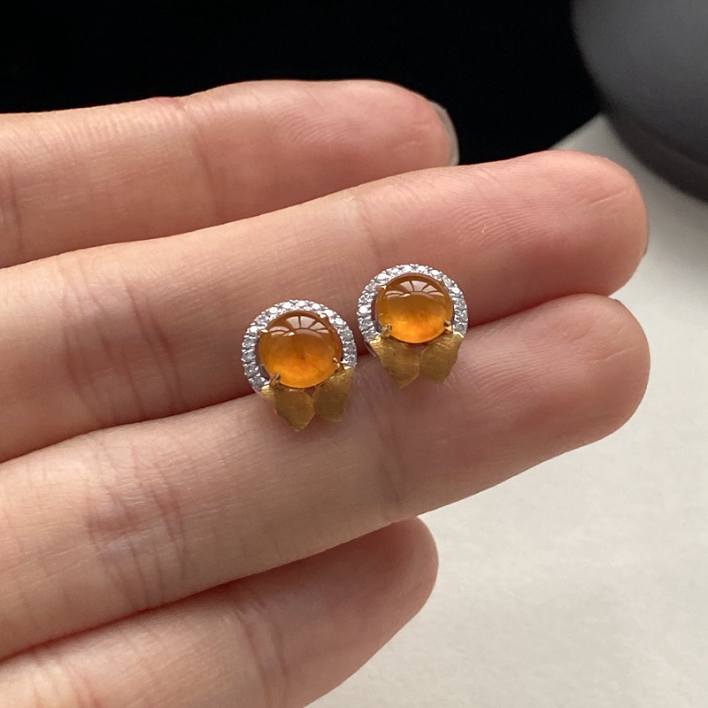 • 18K冰种黄翡耳钉