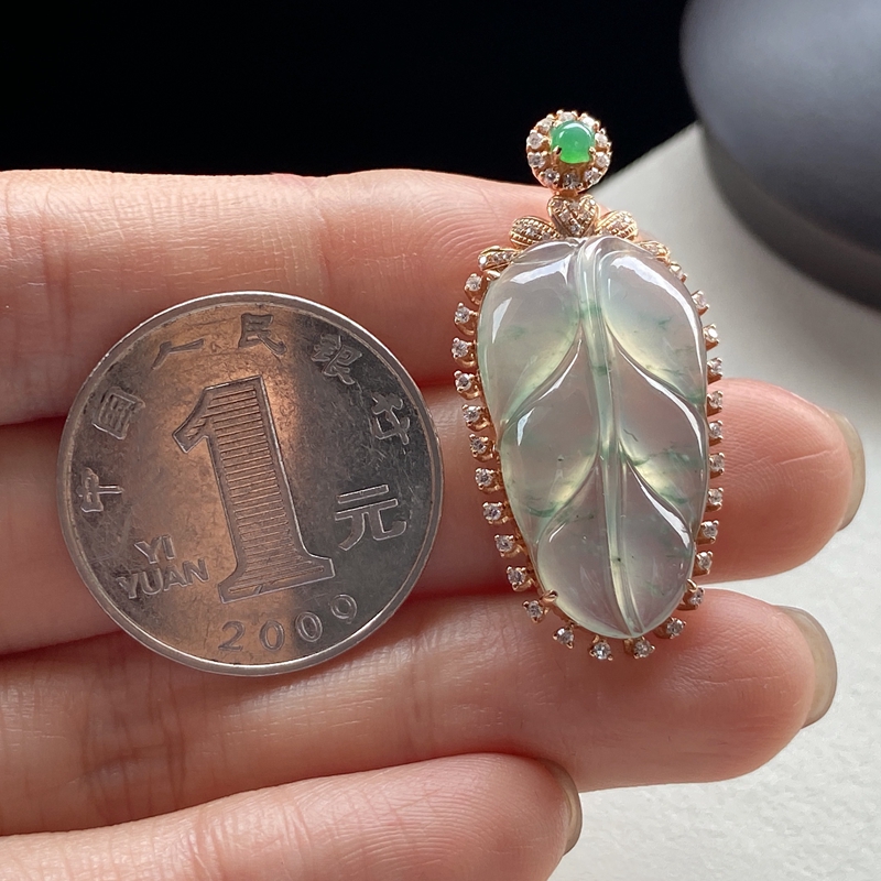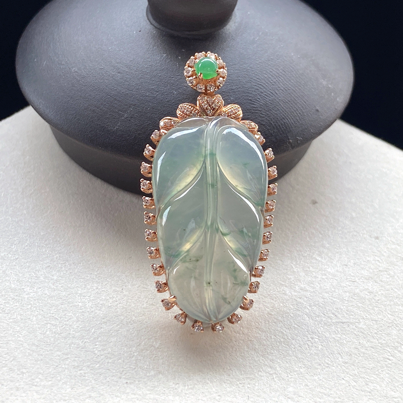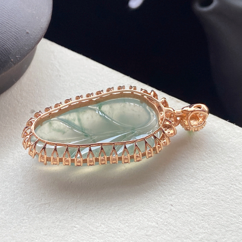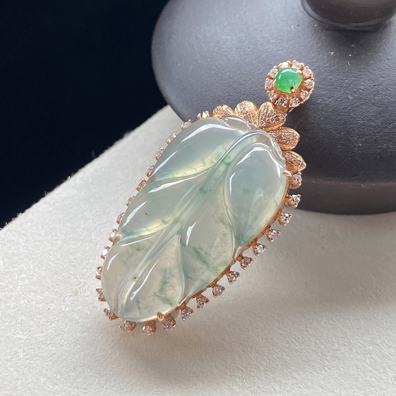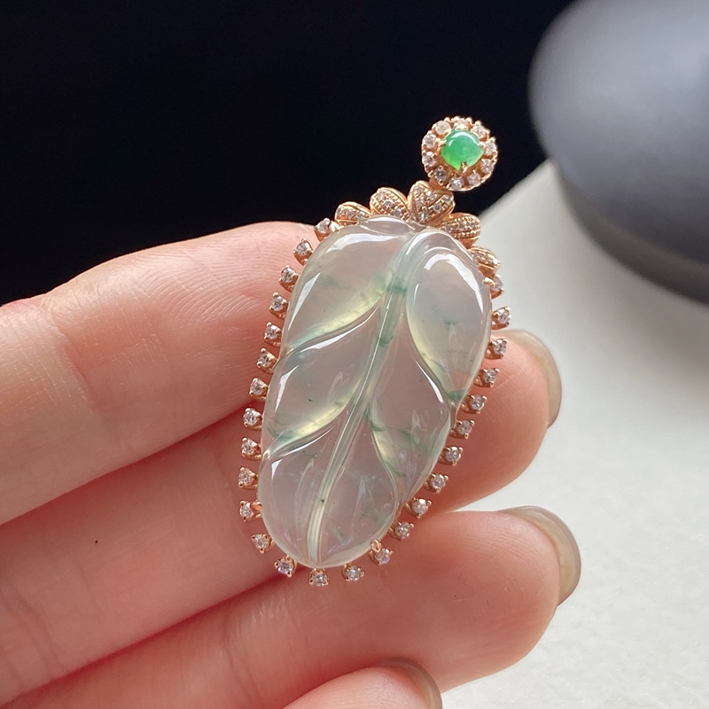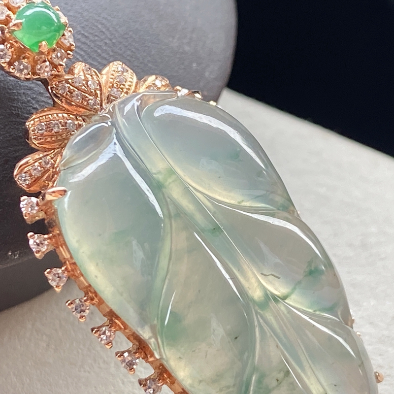 • 18K冰种飘花翡翠金枝玉叶吊坠