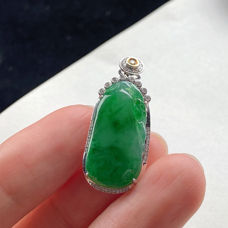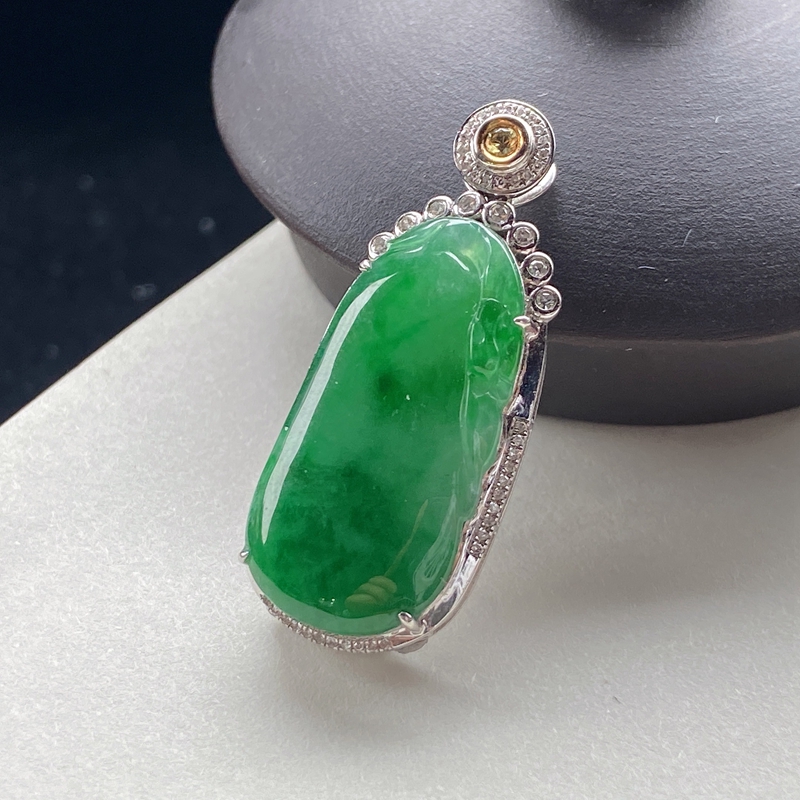 • [名  称] 18K冰种翠绿翡翠福瓜吊坠