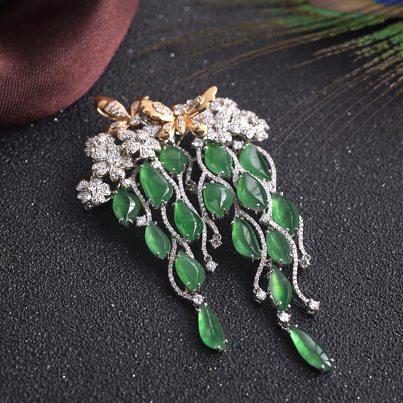 • 18k冰种晴绿翡翠枝繁叶茂吊坠