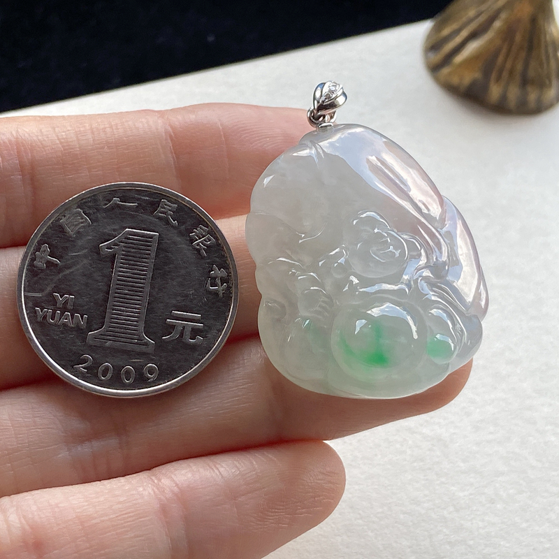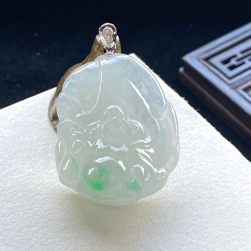 • 18K冰种飘翠翡翠弥勒佛吊坠