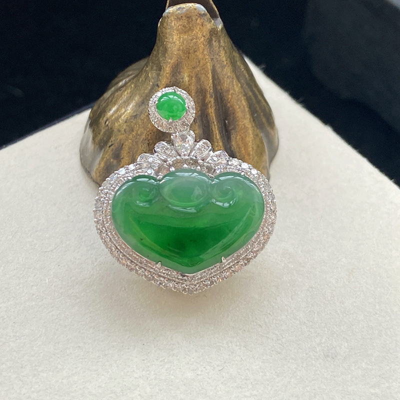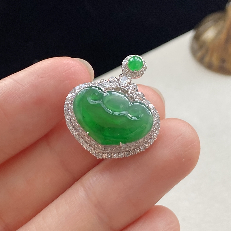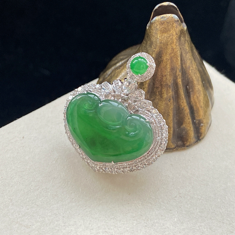 • 18K冰种翠绿翡翠如意吊坠