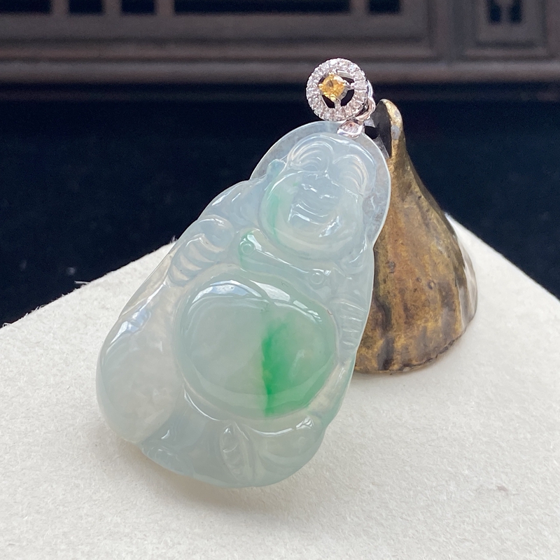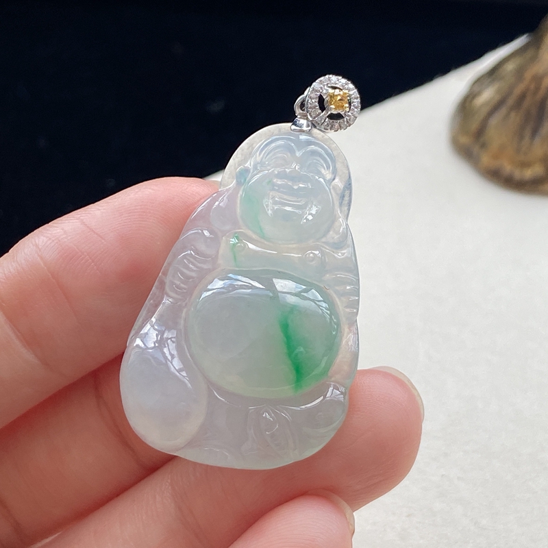 • 18K冰种飘翠翡翠弥勒佛吊坠