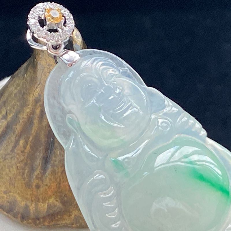 • [名  称] 18K冰种飘翠翡翠弥勒佛吊坠