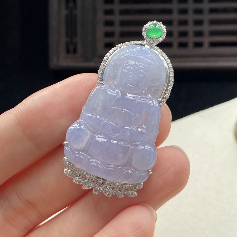 • [名  称] 18K冰种紫罗兰翡翠观音吊坠