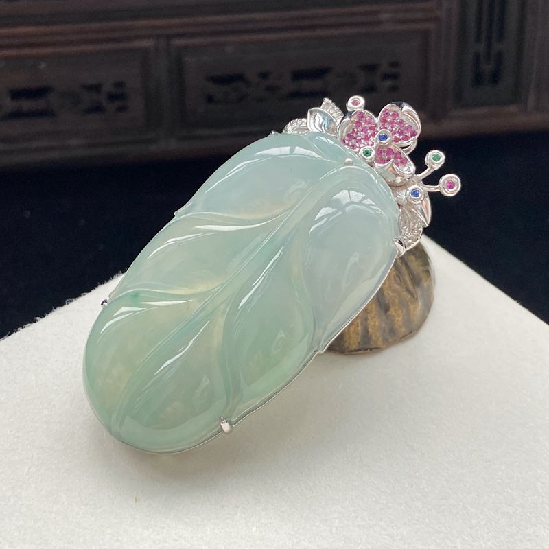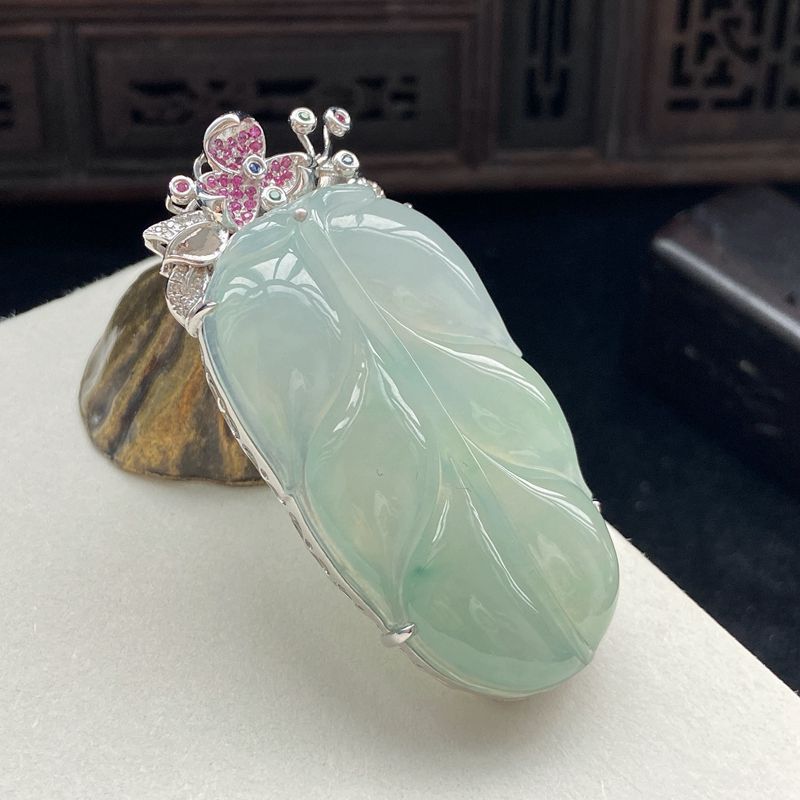 • [名  称] 18K冰种浅水绿翡翠金枝玉叶吊坠