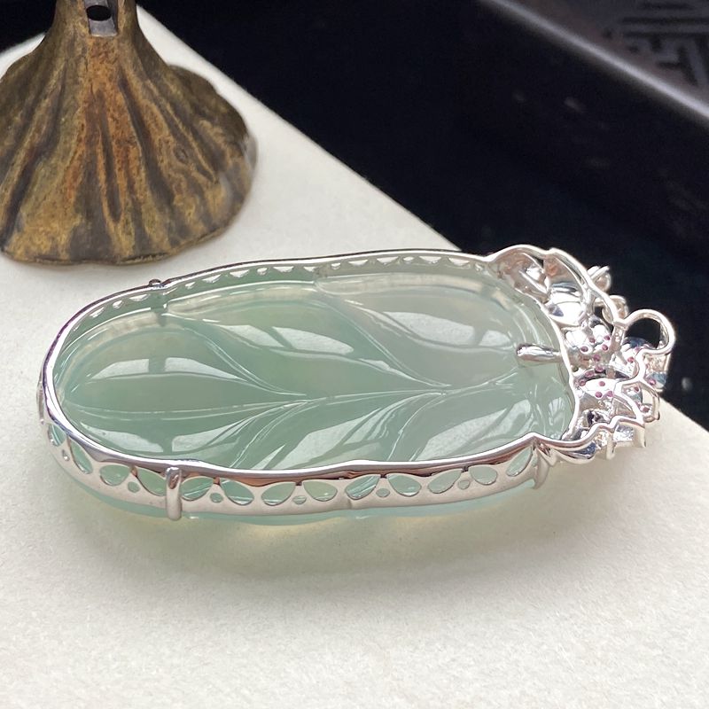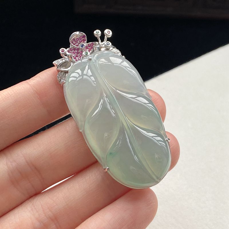 • 18K冰种浅水绿翡翠金枝玉叶吊坠