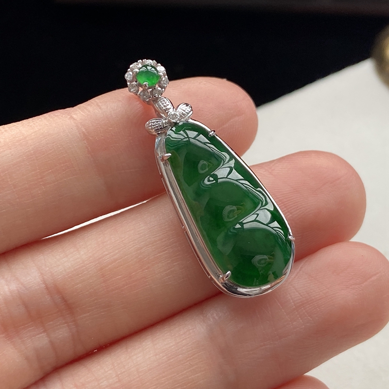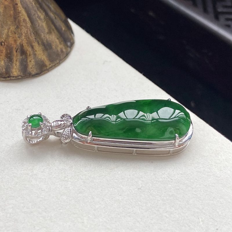 • [名  称] 18K冰种豆绿翡翠福豆吊坠