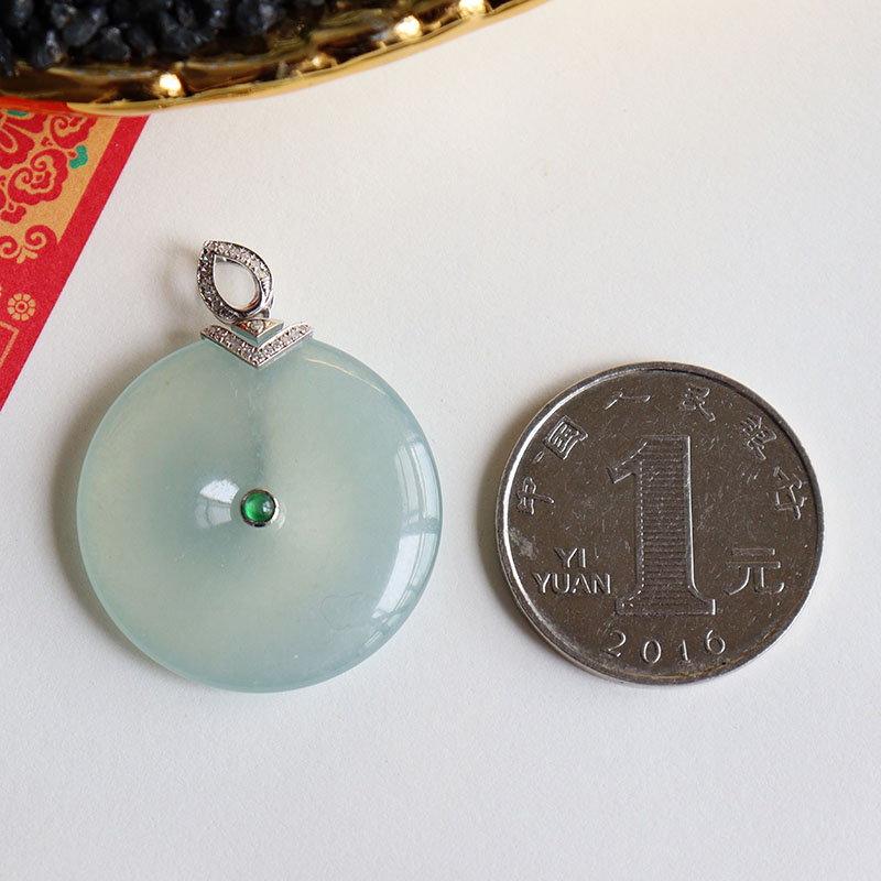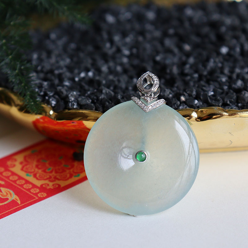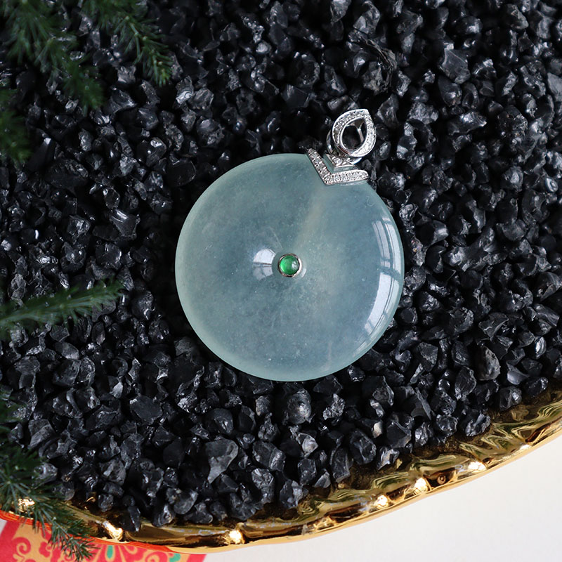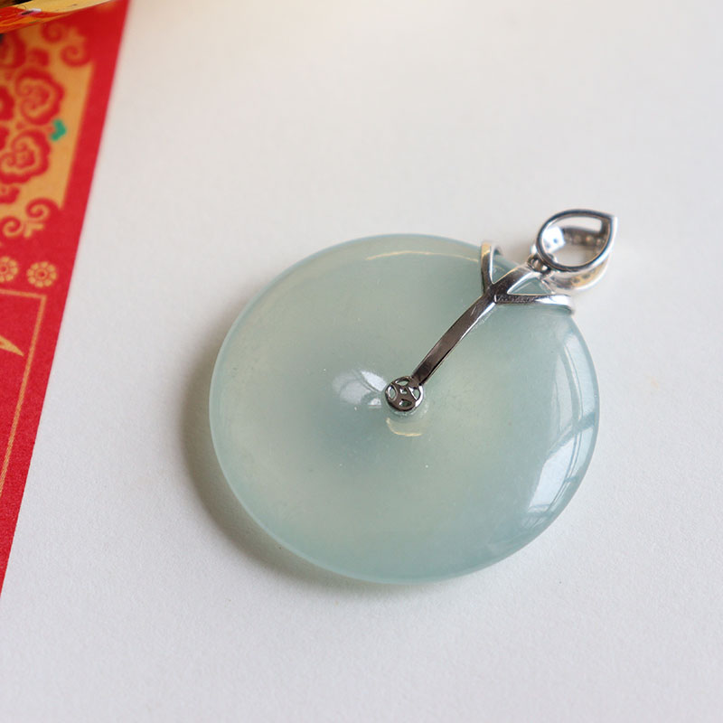 • 18k冰种浅绿翡翠平安扣吊坠