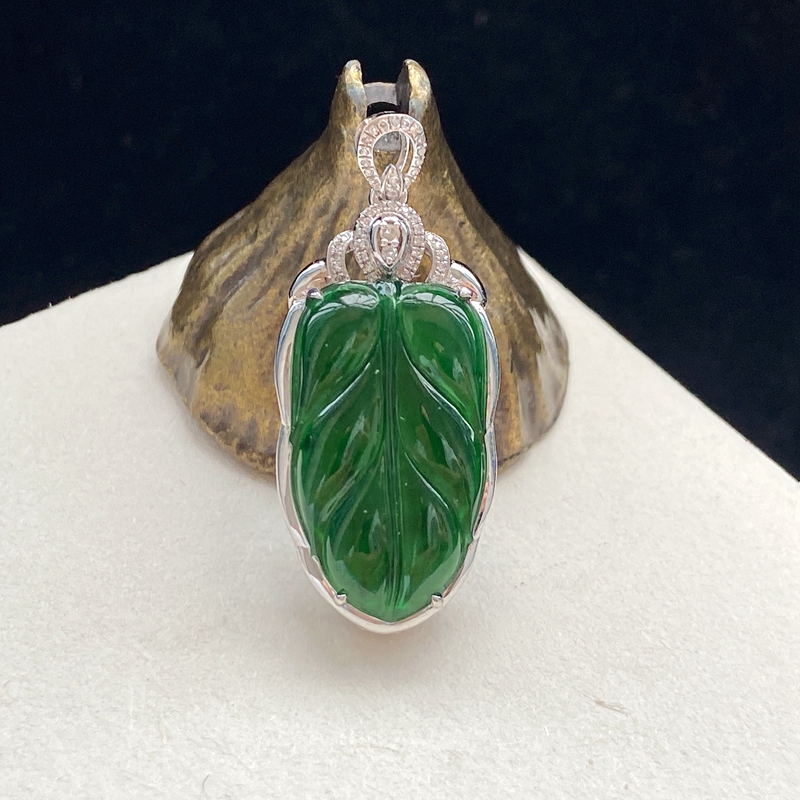 • 18K冰种油绿翡翠金枝玉叶吊坠